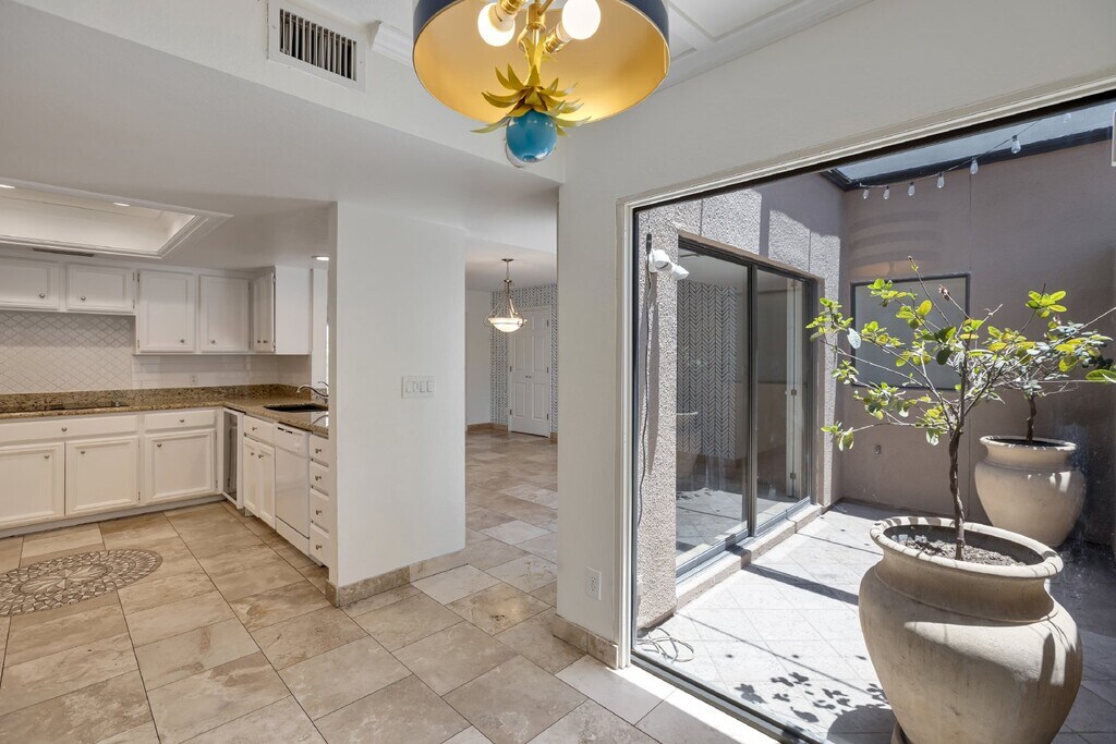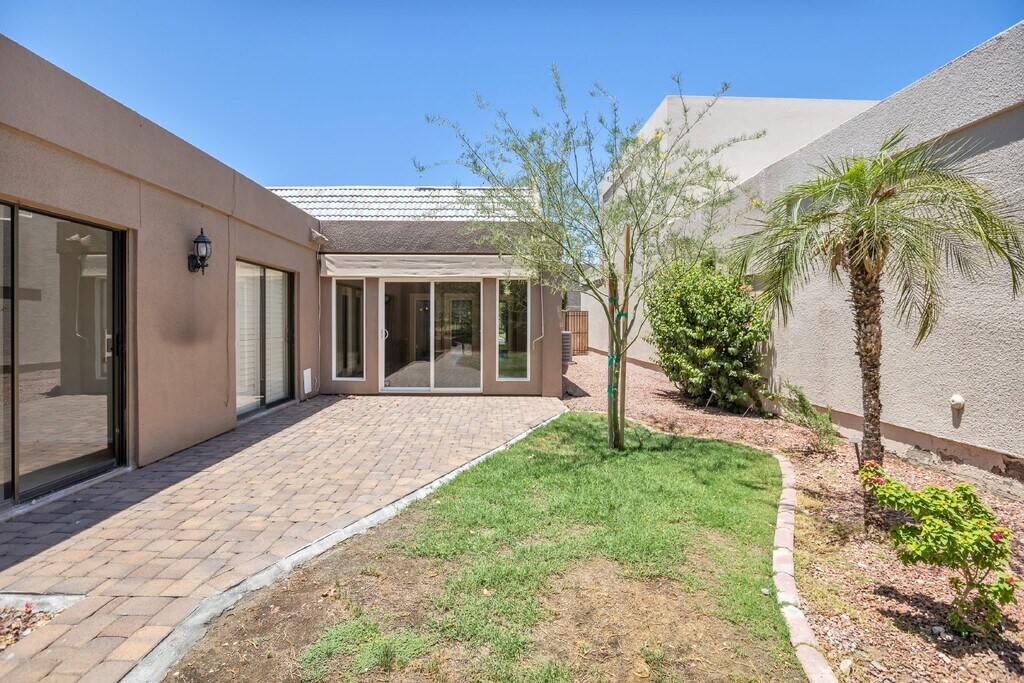 Lovely open floorplan home on the golf course with trees for privacy. Light and bright with travertine flooring and white kitchen. New pavers in large yard,two car garage and quiet corner location. Huge master suite with built-ins. Gated community for security in this prestigious section of the Arizona Biltmore community! Please note that this section of homes does not have a community pool. Applicants must have minimum 650 FICO Score and 2.5X rent for gross monthly earnings.