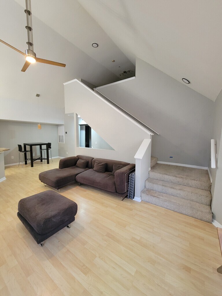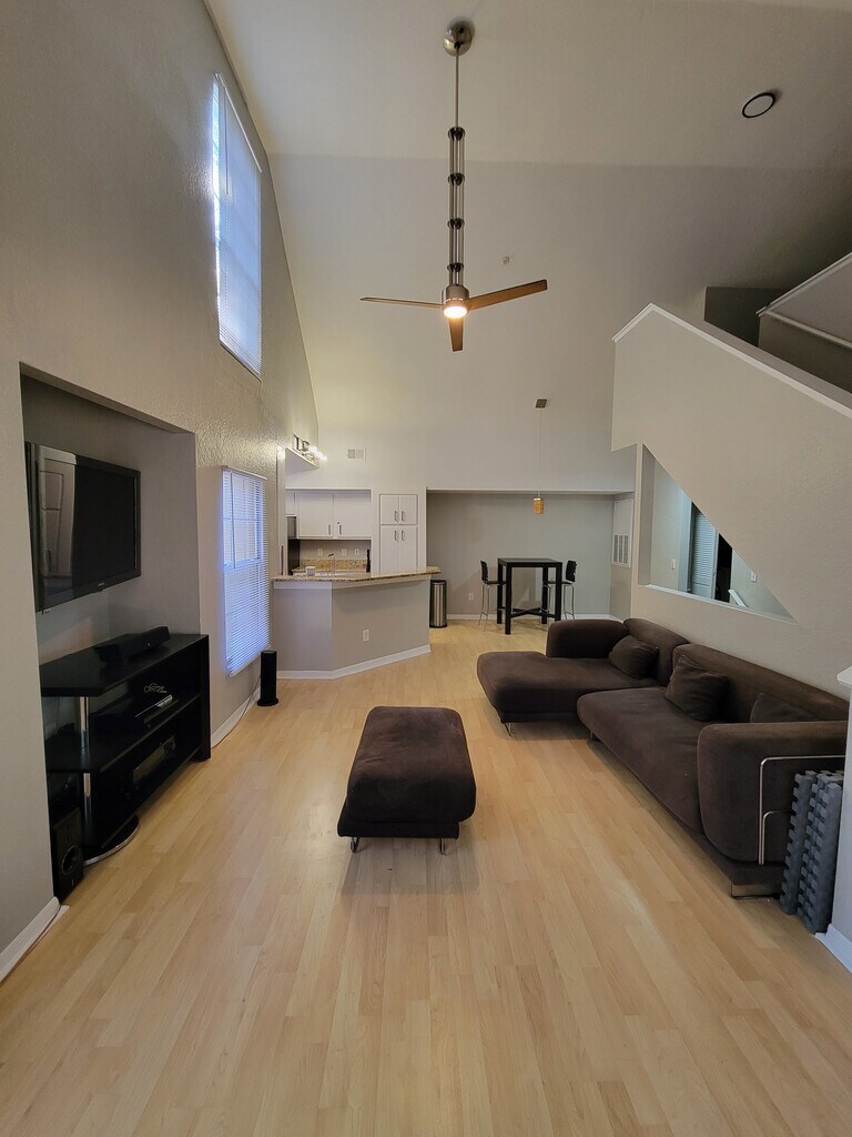 Modern Lofted 1BR Condo with Elevated Design & Flexible LivingExperience refined living in this beautifully updated 1-bedroom condo with a spacious loft that easily functions as a second bedroom, office, or private retreat. Vaulted ceilings and an open layout create a bright, airy atmosphere that feels far larger than expected.Designed with a modern aesthetic, the home features sleek laminate and vinyl flooring, stainless steel appliances, bold black hardware, and a deep soaking tub for a spa-like finish.Privately situated on the second floor with an interior staircase, this residence offers both quiet comfort and a sense of separation. Set within a welcoming, well-kept community, you’ll enjoy a peaceful environment with a connected, neighborhood feel.