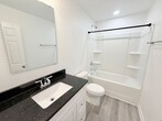 View In 3D: This 4-bedroom, 2.5-bathroom home with a one-car garage offers over 1500 square feet of comfortable living space with neutral paint and low-maintenance LVP flooring throughout. The open family room provides direct access to the deck and backyard, and flows nicely into the modern kitchen. The kitchen features ample white cabinetry, dark granite countertops, a large center island, a deep basin undermount sink, and stainless steel appliances including a refrigerator, flat-top range/oven, built-in microwave, and a dishwasher. The downstairs also offers a convenient half-bath, perfect for guests. Upstairs, all four bedrooms and two full bathrooms are thoughtfully arranged, along with a convenient laundry area equipped with a full-size washer and dryer. Additionally, enjoy the beautiful wooden deck overlooking the backyard.