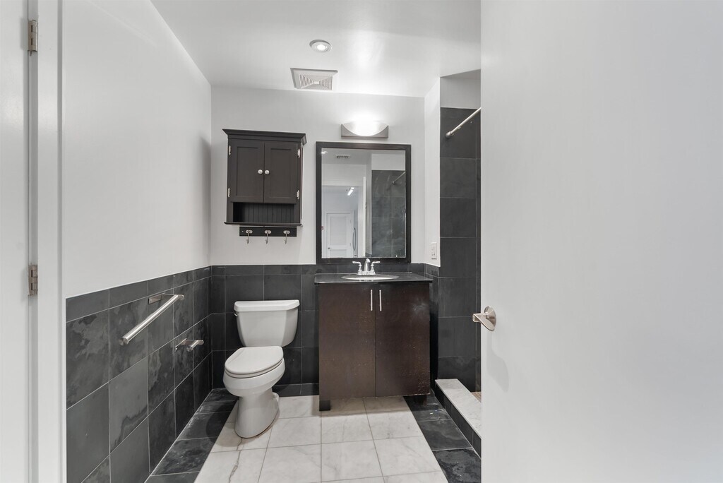 Residence 2A at 635 6th is a bright, well maintained, 2 bed/2 bath in a modern steel and concrete elevator building. As you walk through your proper entryway into the unit you'll be welcomed into a large open concept living and dining area boasting large windows and expansive terrace. The well-appointed chef's kitchen showcases elegant espresso cabinets, quartz countertops, under-cabinet lighting, a full suite of stainless steel appliances, and a breakfast bar with seating for 3-4 people. The generous primary bedroom features a sizable walk-in closet and an en-suite bathroom with a separate shower and jacuzzi tub, a double vanity, and natural stone tile. The second bedroom has its own access to the bathroom, adorned with chic black and white marble and slate-style tiles. This exceptional offering comes complete with video front door system, a large garage parking spot, a terrace overlooking your shared backyard with furniture + grill for summer BBQs, in unit washer/dryer, central AC/heat, bicycle storage, gleaming hardwood floors. Conveniently located in midtown, this residence provides easy access to various commuting options such as NJ Transit bus routes to Port Authority, LightRail, PATH, and the Hoboken Hop. Discover and relish in the vibrant artistic community, entertainment venues, shopping destinations, and dining experiences situated at the nearby Monroe Center. Additionally, enjoy leisurely strolls to the 2-acre 7th & Jackson Park, which features a community gymnasium and a children's playground, adding to the charm and allure of this desirable location.