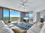 Fabulous distant Gulf views from this 8th floor residence in one of Pelican Bay’s most centrally located high-rise buildings! Located conveniently next door to the main Commons center & tram station,a private walkway from the building leads right to the facility,so no driving is necessary! Recent residence updates include a modernized kitchen with granite countertops and stainless steel appliances,laminate wood flooring throughout all living areas & bedrooms,newer décor and much more. Though there are full two bedrooms,an intimate TV room/den with sleeper sofa can be closed off from both the living room & kitchen to provide extra privacy or accommodations for any overflow guests. The exterior glassed dining room area boasts stunning views while dining at any time of the day or night. The living room offers a formal sitting area on one side with four chairs and a cozy TV viewing area with sofa on the other. The glass dining room table can seat up to six plus there are three bar stools at the kitchen bar. Every creature comfort has been provided to make a tenant's stay more convenient and enjoyable. Amenities to St. Lucia include a heated pool and spa,exercise room,social room,library,guest suites (subject to availability),secured lobby access and on-site manager. Enjoy the world class amenities of Pelican Bay including two private casual beachfront restaurants,beach shuttle,beach chair & umbrella set-up service,tennis club (pay per play),community fitness center,walking trails and more.