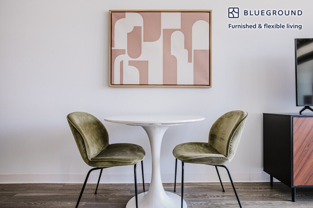 Feel at home wherever you choose to live with Blueground. You’ll love this charming River North furnished one bedroom apartment with its modern decor, fully equipped kitchen, and beautiful living room with great balcony views. Ideally located, you’re close to all the best that Chicago has to offer! (ID #CHI1193) The advertised rate of $3,150/month is the lowest available price, based on a 12 month(s) stay with a move-in date of April 23, 2026. Rates vary depending on the duration of stay, season, and other parameters. For exact pricing and additional pricing components, please visit our website and enter your desired move-in and move-out dates. The rate is applicable when billed upfront; it can be higher if billed in multiple payments. Brokers are welcome to reach out. Were you looking for an unfurnished lease? Try Blueground instead and upgrade from unfurnished to furnished living: - Furnished at rates comparable to unfurnished - No setup or furniture costs - save thousands - Move-in ready - save time, just bring your suitcase Designed with you in mind As with any Blueground apartment, you’ll find a thoughtfully designed space complete with beautiful furniture and a fully equipped kitchen in this one bedroom property. And, thanks to our superior quality mattresses, fully stocked linens, and towels, you can relax knowing you’ll always feel comfortably at home. When you’re ready for some fun, you can take in the Chicago vibes or bring the entertainment to you with the premium wireless speaker or smart TV. This apartment also offers in-apartment laundry. Sleeping arrangements Queen Bed, 63in/160cm Amenities Building amenities unique to this one bedroom apartment include an on-site: - Doorman - Dryer - Elevator - Game room - Swimming pool - Washing machine - Pets allowed - Sauna Arrival and ongoing support The entire apartment is yours to enjoy! Throughout your stay, you’ll have access to our Client Experience team through the Blueground App. You can schedule additional cleanings, submit maintenance requests, and view our neighborhood recommendations with just a few taps. We’ll share all details upon confirmation of your stay. Ideally Located This furnished apartment is located in River North, Chicago’s most trendy neighborhood. The bridges combined with the river walk offer incredible views. Nearby on Michigan Avenue is the city’s premier shopping area. One of the neighborhood’s biggest assets is the walk-to-work appeal. Young professionals, who live and work in the area, can quickly get to the office in the morning and just as easily enjoy an after-work drink, as the area is considered a premier entertainment center. Don’t miss a stroll on Kinzie and Hubbard streets. Merchandise Mart, the iconic building with showrooms, shops, and office space, is only a 5 minute walk. The Loop is just across the bridge and is about 5 minute walk. Other things to note Building amenities may have an extra cost. This Blueground apartment has flexible lease options, allowing you to book it for one month, a year, or more. Pets are welcome, though weight limits and breed restrictions apply and may incur fees. We take great pride in ensuring every photo displayed is shot in our own units with our actual furnishings. That said, we regularly refresh our decor and furniture arrangement, which may differ from what’s pictured. Also note - The apartment is in a busy location, so it will be noisy when your windows are open - This is a guarded building equipped with a doorman/concierge at all times - The building's sundeck is closed during winter months [SI]