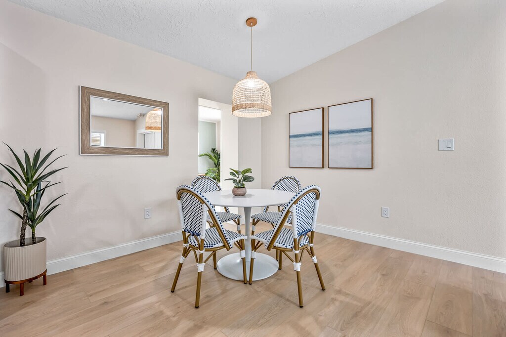 Welcome to The Drift, a beautifully updated beachside apartment that perfectly blends modern comfort with coastal relaxation. Ideal for all types of travelers, from honeymooners and families to remote workers and groups of friends, this stylish space is tailored for your convenience and enjoyment. Enjoy a comfy king-size bed, a fully equipped kitchen or kitchenette, dining area, and high-speed Wi-Fi. Beach essentials are provided, and the beach is just 700 feet away! This thoughtfully designed two-bedroom apartment is your personal slice of paradise, featuring a plush king-size bed, a full kitchen, and a cozy dining space—perfect for enjoying your fresh catch of the day. With speedy Wi-Fi and refreshing air conditioning, you’ll stay as chill as the ocean breeze. Kickstart your day with a 2-minute stroll to the beach, and all the essentials are waiting—beach chairs, umbrellas, and carts to make your seaside lounging effortless. After soaking up the sun, wander just six blocks to downtown Cocoa Beach, buzzing with lively restaurants, cool bars, and fun local attractions. Don't forget to look up—those rocket launches are a sky-high spectacle you’ll never forget! On-site parking makes exploring the area stress-free—just load up and head out to discover Cocoa Beach’s many treasures. We offer mid-term cleaning services to keep your apartment fresh throughout your stay. While we love all furry friends, only dogs are allowed at this property, with a fee of $100 per pet, per stay. Experience the best of both worlds in our prime location. Just a quick 5-minute walk to the golden shores of Cocoa Beach and close to the heart of downtown. Indulge in mouthwatering delights at the fantastic local restaurants or catch a thrilling rocket launch nearby. For those seeking adventure, the area offers a plethora of attractions to explore. Although there is so much to walk to, Uber and Lyft are very prevalent in the area. Convenient scooter rentals are available nearby to explore Cocoa Beach with ease. You’ll have full access to your private apartment and shared outdoor amenities. Complimentary beach equipment is available for guests to enjoy during their stay, but it is communal and available on a first-come, first-served basis. Guests are kindly asked to return items after use so everyone can enjoy them. Beach equipment is not guaranteed, so if you have specific needs, we recommend bringing your own. A mailbox is not available for guests. To ensure a comfortable start to your stay, an initial stock of essentials is provided, including paper towels, toilet paper, tissues, coffee pods, creamer, sugar, light cleaning supplies, garbage bags, sponges, dish soap, and dishwasher tabs. If you need additional supplies during your stay, please plan to replenish them as needed.