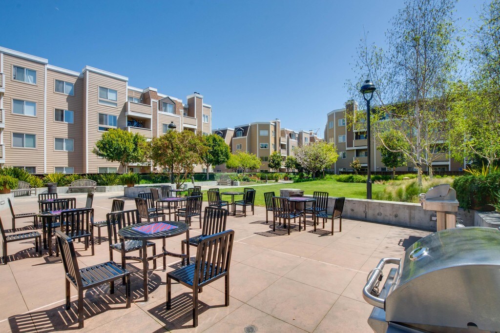 Available Jan 1, 2026, this unfurnished 2 bedroom, 2 bathroom condo offers an unparalleled living experience with courtyard views, a pool, gym and 1 parking spots in the desirable Bridgewater community. As you enter, you’ll be delighted by the open and spacious flow of the functional floor plan featuring one bedroom and one bathroom on each side of the living spaces providing the ultimate privacy. The updated kitchen has stainless appliances, stone countertops, crisp white cabinetry and a breakfast bar. The large light-filled living room opens to a private balcony with filtered Bay views - a perfect spot for morning coffee and evening drinks! There are two good sized bedrooms with primary bedroom with en-suite bath and walk-in closet. The second bedroom is conveniently located next to the second bathroom and also provides ample storage in the walk-in closet. There is in-unit washer and dryer and one deeded parking garage space. As an added bonus, the condo building offers a gym, pool, sauna and spa. Other community amenities include a clubhouse and green space w/bbq area to host events as well as electric vehicle charging. With top-tier security measures in place to help handle visitors and package deliveries, this condo provides the ultimate urban living experience. Located 2 blocks away from the Emeryville Public Market, minutes to the Berkeley Marina and easy access to major freeways, BART, and F/J bus lines to San Francisco, this residence combines modern sophistication with the convenience of urban living.