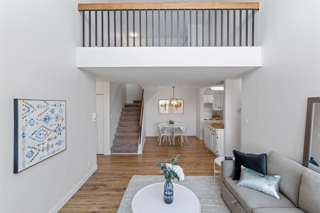 Cozy Penthouse LOFT with Unparalleled DOWNTOWN VIEWS Welcome to this Penthouse Loft unit at the Village of Westhills, where luxury meets lifestyle in this top-floor multi level penthouse! Offering over 800 sqft of stylish living space across two levels, this 2-bedroom loft is a rare gem in Calgary's sought-after West Side community. With its soaring high ceilings and abundant natural light pouring in through expansive windows, you'll feel right at home in this bright and airy space. This east-facing unit offers spectacular downtown views from every window that will truly captivate you. The generous living room is ideal for relaxation and entertaining, while the large bedroom boasts ample closet space to accommodate all your storage needs. The efficient kitchen features sleek white appliances, pristine white cabinets and a spacious walk-in pantry. The loft, complete with a closet, offers endless possibilities—use it as a second bedroom, a serene home office, or a chic den. Step outside to your spacious deck and enjoy the views, complete with a private storage room. Take advantage of the ultimate convenience that the Village of Westhills offers - quick access to downtown, schools, public transit, hospitals, shopping, and recreation. Located directly across from the Coach Hill Off-Leash Dog Park with excellent access to major routes such as Bow Trail, Stoney Trail and Glenmore Trail you are 15 minutes to Downtown, 25 minutes to the airport, 15 minutes to U of C and MRU, 10 minutes to Canada Olympic Park plus it's an easy drive to the mountains! Perfect for working professionals, students, pet lovers, or the adventure seekers! This one-of-a-kind loft is waiting for you—book your showing today and make it yours! Rent includes: heat, water, 2 assigned parking stalls, and 1 storage locker **All pets are subject to owner and condo board approval