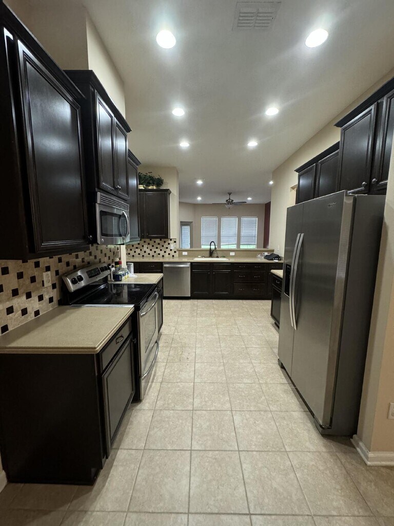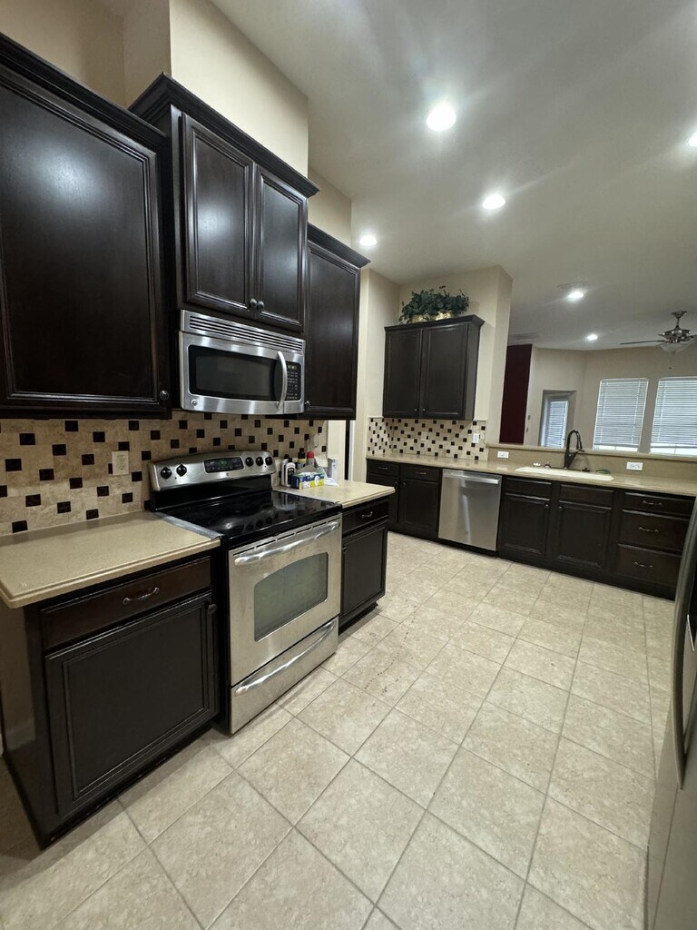 This beautiful 4 bedroom, 3 full bath home offers 2,550 sq ft of thoughtfully designed living space. Step inside to find tile floors throughout, with cozy carpeted bedrooms for added comfort. The layout includes a formal living room, formal dining room, and a separate office plus an additional den, giving you all the space you need for work, play, and entertaining. The eat-in kitchen is a chef’s dream with granite countertops, stainless steel appliances, and plenty of cabinetry. Highlights: Spacious master suite with large walk-in closets, garden tub, and his & her sinks Covered patio for relaxing outdoors Two-car garage Situated on a desirable corner lot This home blends elegance and functionality, perfect if you are looking for both space and style.