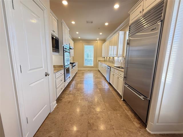 Conveniently located in the heart of Preston Hollow, this luxury property is just a short walk to restaurants and shops. This stunning 2-bedroom, 2.5-bath unit features high-end finishes such as travertine and wood floors, a Wolf range, a convection oven, a Sub-Zero refrigerator, and soaring high ceilings. The spacious living and dining areas are perfect for entertaining, while each bedroom includes a large ensuite bath and a generous walk-in master closet. Additional highlights include an abundance of natural light, a Juliet balcony, and the convenience of direct elevator access to the garage and lobby. The community offers exceptional amenities, including on-site maintenance and management, a 24-hour fitness center, an outdoor pergola with a grilling area, and more. Two reserved parking spaces in a gated garage complete this exceptional offering. Experience luxury, comfort, and convenience in one of Dallas’s most desirable neighborhoods!
