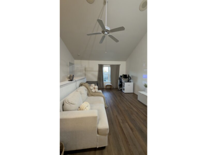 1 Bed 1 Bath Condo, laminate floor, high ceilings, walk in closet, washer & dryer. Gated Community with access to community pool and fitness center. HOA approval required $100 per adult or married couple. One month security deposit and renters' insurance required.