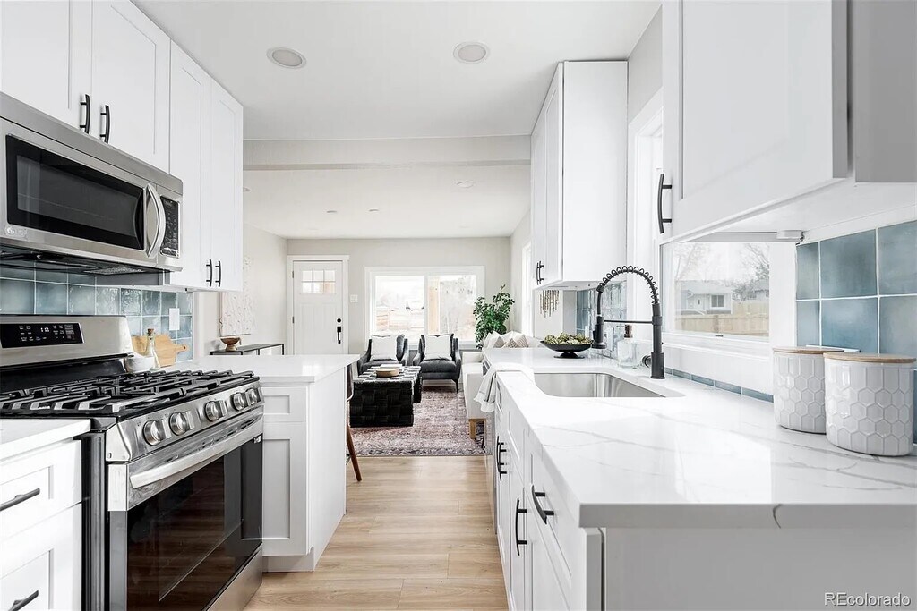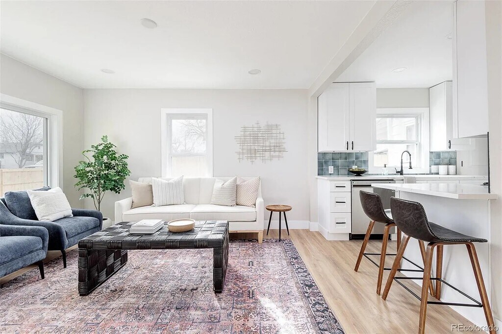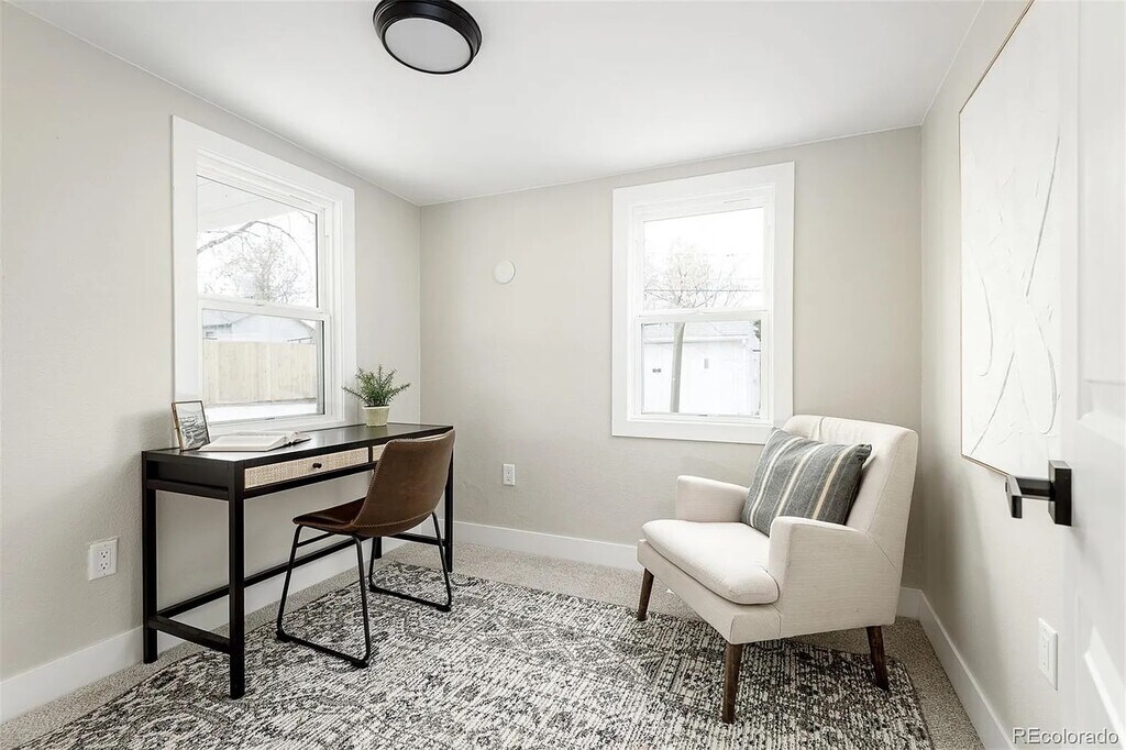 Fully renovated in 2023, this 3 bed, 2 bath home blends modern comfort with an unbeatable location. The kitchen features new stainless steel appliances, a gas range, and a walk-in pantry. The primary bedroom offers a spa like en-suite with a dual head rainfall shower and double vanity. A large secondary bedroom provides extra space, while the third bedroom is perfect for an office or guest room. The secondary bathroom is a full bath with a shower/tub combo. Enjoy the outdoors with a rare large lot, a fully fenced backyard, professional landscaping, new concrete patio and mountain views. The home also includes in-unit washer + dryer plus an unfinished basement, perfect for storage, seasonal items, or a home gym setup. A driveway and attached carport will keep your vehicles off the street. Located just off 6th Avenue, you'll be downtown, at Sloan's Lake, or Mile High Stadium in 5 minutes. 12 month lease preferred. Owner pays for water, sewer, trash. Tenant to cover electric, gas, cable/wifi. Small dogs ( 40 pounds) will be considered. No cats. No smoking allowed Property is leased unfurnished. Staged furniture is not included.