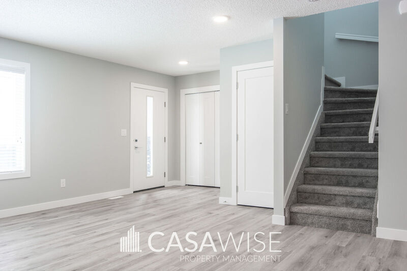 MODERN 3-Bed/2.5-Bath Family Home in McConachie With a Single Garage! Welcome to this stylish and well-designed home, offering modern finishes, functional living space, and thoughtful details throughout! • Open-concept main floor layout – Bright and airy design that seamlessly connects the kitchen, living, and dining areas, perfect for both everyday living and entertaining. • Contemporary kitchen – Equipped with stainless steel appliances, sleek quartz countertops, a ceramic tile backsplash, and a central island ideal for meal prep, casual dining, and additional storage. Corner pantry provides extra space for organization, while modern lighting enhances the space. • Main floor half bathroom – Conveniently located for guests, featuring modern fixtures, a sleek vanity, and easy access from the main living area. • Spacious living and dining areas – Generous layout with plenty of room for furniture arrangement and hosting guests. • Primary bedroom – Large bedroom featuring a walk-in closet and a private ensuite with double sinks and a stand-up glass shower for a clean, modern feel. • Two additional bedrooms – Well-sized rooms perfect for family, guests, or a home office setup. • Full main bathroom upstairs – Conveniently located and finished with modern fixtures. • Upstairs laundry room – Includes front-load washer and dryer, plus a linen closet and extra storage space for added convenience. • Quality flooring throughout – Durable vinyl plank flooring on the main floor for easy maintenance, with soft carpet upstairs for added comfort. • Private backyard with deck – Great outdoor space for relaxing, BBQs, or enjoying the warmer months. • Single detached garage – Provides secure parking and additional storage options. • Unfinished basement – Spacious lower level offering plenty of room for storage, or flexible use to suit your lifestyle needs. Heat, water, and power are included in the rent! One small pet is negotiable with a fee of $50/month. Pet approval is at the time of the application and not guaranteed thereafter. No Smoking. Professionally managed by Casawise Property Management Only applications received through our site will be processed: If interested, please provide us with your name, phone number, available times for viewings and a little background about you (when do you need the unit for, how many people would be living in the unit, etc.). Thank you!