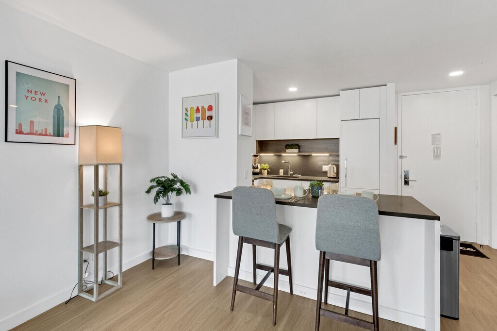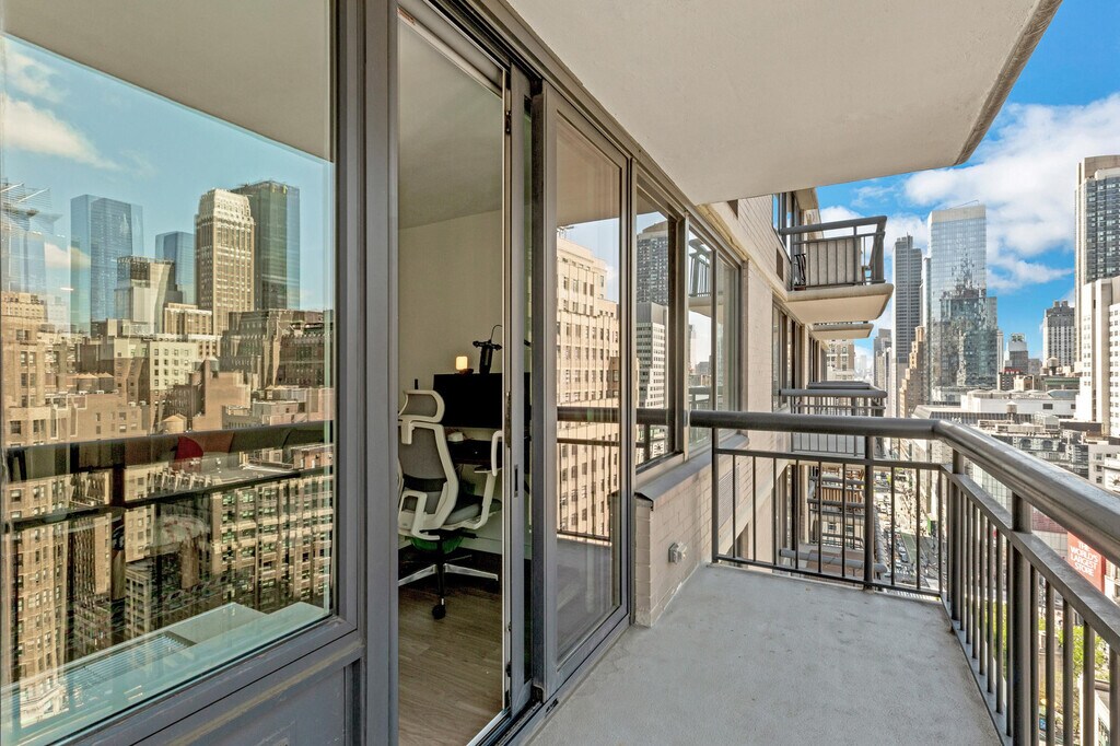 The advertised rate of $8,110/month is the lowest available price, based on a 30 day(s) stay with a move-in date of January 11, 2027. Rates vary depending on the duration of stay, season, and other parameters. For exact pricing and additional pricing components, please visit our website and enter your desired move-in and move-out dates. The rate is applicable when billed upfront; it can be higher if billed in multiple payments. Experience modern luxury and convenience in this 1-bedroom apartment at the vibrant center of Midtown, Manhattan. Feel at home with the city’s most famous sites just steps from your door. This apartment offers a comfortable, upscale lifestyle in one of the most exciting cities in the world. This apartment at Hollingsworth offers a one-of-a-kind combination of practicality and indulgence, from the classic, high-end finishes to the exclusive amenities, including in-unit laundry, air conditioning, sound protection windows, a landscaped rooftop terrace with fountains, fireplace and grills, a sky lounge with gaming tables and a catering kitchen, a 24-hour fitness studio with Peloton bikes, a co-working lounge, and common area Wi-Fi. This fully furnished apartment is custom designed for the remote worker looking for an inspiring environment in which to be productive and includes a fully equipped kitchen with a breakfast bar, a full bathroom, a private balcony, a smart TV, and all utilities. Take a stroll through nature in beautiful Bryant Park, head over for a burger with friends at Shake Shack, or spend an afternoon shopping at Macy’s. Only a few blocks from the Empire State Building, Whole Foods, Penn Station, and 7 subway lines, you’ll have incomparable access to anything you want in Manhattan and beyond. There are currently construction projects taking place near this building, which may cause significant noise disruption during work hours. The A/C runs from May to October, and the heating system works from November to May. These settings are controlled by the building management. Includes private high-speed internet, a standing desk (Uplift), an ergonomic work chair (Uplift), a 34-inch ultra-wide monitor (Samsung), a microphone (Blue Yeti), a webcam (Logitech), computer speakers (Bose), an LED streaming light, a green screen, a keyboard (Logitech), a mouse (Logitech), and a TOTU 16-in-1 Triple Display USB-C 3.1 Docking Station. A laptop computer is not included. [SI]