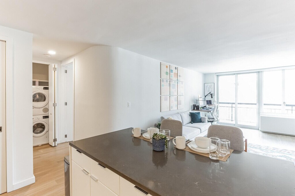 The advertised rate of $7,521/month is the lowest available price, based on a 30 day(s) stay with a move-in date of March 31, 2026. Rates vary depending on the duration of stay, season, and other parameters. For exact pricing and additional pricing components, please visit our website and enter your desired move-in and move-out dates. The rate is applicable when billed upfront; it can be higher if billed in multiple payments. Experience modern luxury and convenience in this 1-bedroom apartment at the vibrant center of Midtown, Manhattan. Feel at home with the city’s most famous sites just steps from your door. This apartment offers a comfortable, upscale lifestyle in one of the most exciting cities in the world. This apartment at Hollingsworth offers a one-of-a-kind combination of practicality and indulgence, from the classic, high-end finishes to the exclusive amenities, including in-unit laundry, air conditioning, sound protection windows, a landscaped rooftop terrace with fountains, fireplace and grills, a sky lounge with gaming tables and a catering kitchen, a 24-hour fitness studio with Peloton bikes, a co-working lounge, and common area Wi-Fi. This fully furnished apartment is custom designed for the remote worker looking for an inspiring environment in which to be productive and includes a fully equipped kitchen with a breakfast bar, a full bathroom, a private balcony, a smart TV, and all utilities. Take a stroll through nature in beautiful Bryant Park, head over for a burger with friends at Shake Shack, or spend an afternoon shopping at Macy’s. Only a few blocks from the Empire State Building, Whole Foods, Penn Station, and 7 subway lines, you’ll have incomparable access to anything you want in Manhattan and beyond. There are currently construction projects taking place near this building, which may cause significant noise disruption during work hours. The A/C runs from May to October, and the heating system works from November to May. These settings are controlled by the building management. Includes private high-speed internet, a standing desk (Uplift), an ergonomic work chair (Uplift), a 34-inch ultra-wide monitor (Samsung), a microphone (Blue Yeti), a webcam (Logitech), computer speakers (Bose), an LED streaming light, a green screen, a keyboard (Logitech), a mouse (Logitech), and a TOTU 16-in-1 Triple Display USB-C 3.1 Docking Station. A laptop computer is not included. [SI]