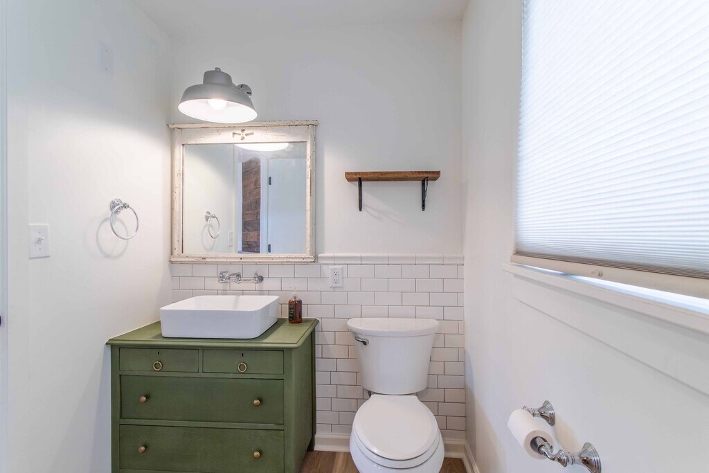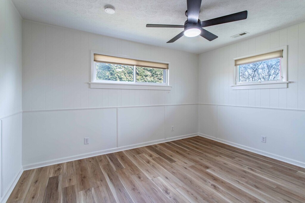 Newly renovated 3BR 1.5 BA ranch home on the greenway. Screened front porch, covered back porch, gas fireplace, fenced yard, spacious shed.