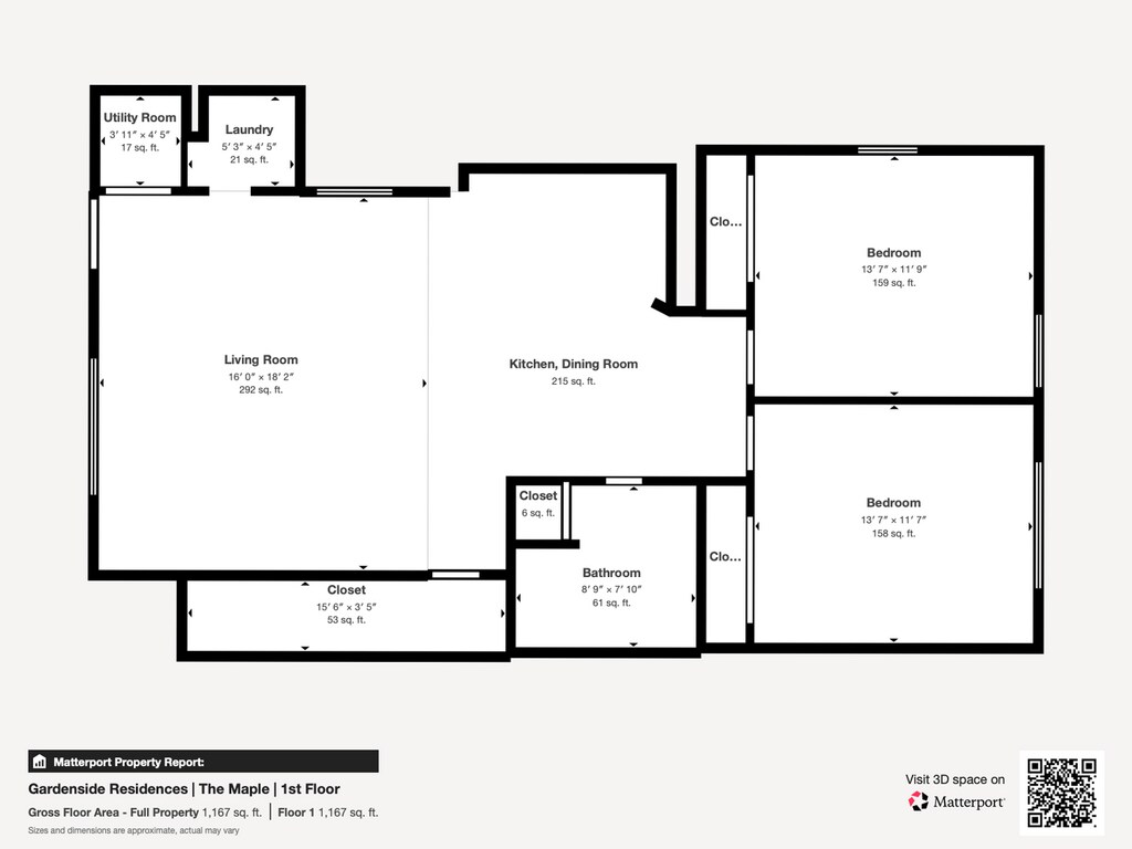 Gardenside Commons Residences | The Maple | 1st Floor 2 BD | 1 BA | 984 sq. ft. Comfort, Privacy, and Clean Modern Style 2-Bedroom, 1-Bath Apartment with In-Unit Washer & Dryer – 1st Floor $500 Move-in Bonus for a limited time! Video Tour: 3D Tour: Welcome to The Maple at Gardenside Commons Residences—a thoughtfully designed 2-bedroom, 1-bath first-floor apartment offering comfort, efficiency, and privacy in a newer-build community. Each apartment is a private flat with its own dedicated entrance—no shared interior hallways. With only one shared wall, these units offer enhanced privacy compared to traditional apartment layouts. Unique to the first floor, this apartment includes extra storage closet and in-floor, radiant heat in the main living area. Inside, you’ll find 9-foot ceilings, hard-surface flooring, granite countertops, and soft-close cabinetry, paired with matching modern appliances including a dishwasher and built-in microwave. Energy-efficient heat pumps provide both heating and air conditioning, giving residents full control year-round. A washer and dryer are included in-unit for added convenience. Community & Apartment Features: • In-unit washer & dryer • Energy-efficient heat pump & air conditioning • Granite countertops & soft-close cabinetry • Dishwasher & built-in microwave • Hard-surface flooring • 9-foot ceilings • Private entrance (no shared hallways) • Secure entry with direct outdoor access • Storage included Parking & Outdoor Amenities: • Two unassigned off-street parking spaces per apartment • Additional overflow parking available • Picnic and BBQ area • Trash, recycling, and compost pickup included Pet Policy: • One cat or non-aggressive dog allowed (large or small) For more information about the community, visit: Photos or videos may be a likeness and may not represent the exact unit.