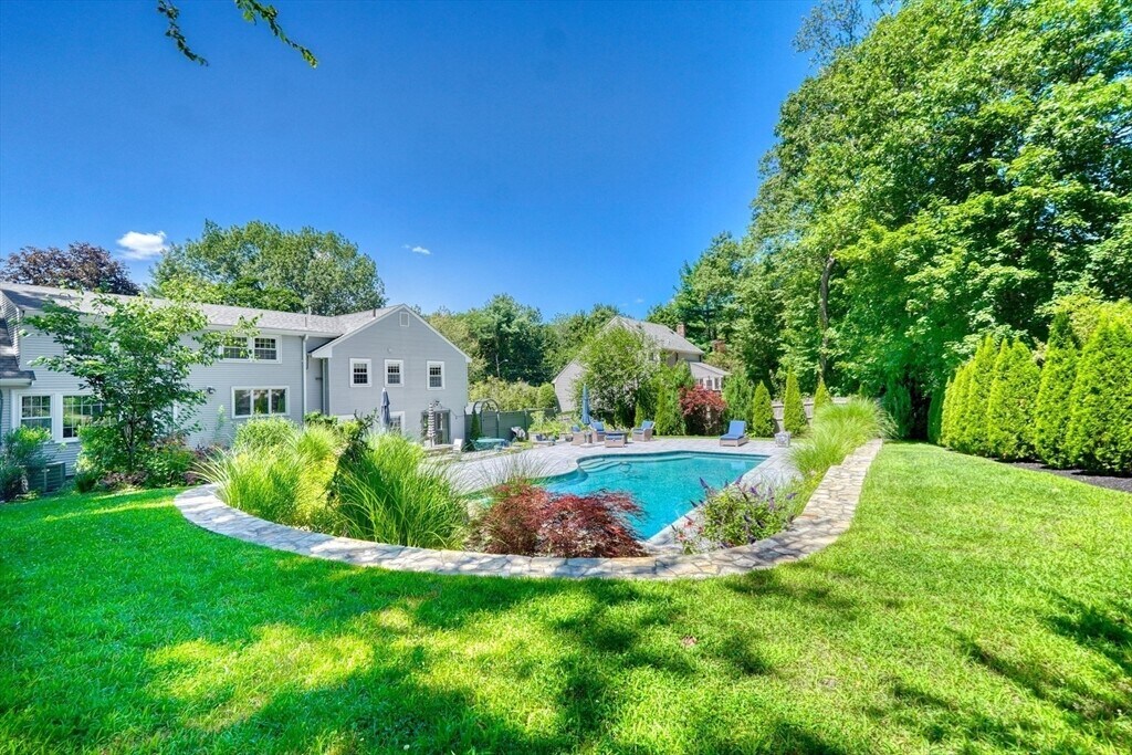 Well maintained Split Level Colonial with large rooms, beautifully Landscaped yard, patio area and pool. This home is a combination of formal and family living spaces. The 1st floor offers a formal living room with a fireplace that opens to a large dining room adjacent to a den with lots of windows and a skylight. The large eat-in kitchen has plenty of cabinetry and Jenair appliances overlooking the back yard. The 2nd and 3rd floors have five large bedrooms--a beautiful Primary suite, a full hallway bathroom. This home also has a finished lower level--great/exercise/play room with fireplace. The side entre mud-room and 1/2 bathroom with access to the Beautiful rear yard Pool and patio area for entertaining as well as a 2-car attached garage. Walking distance to the High school and a great commuter location.
