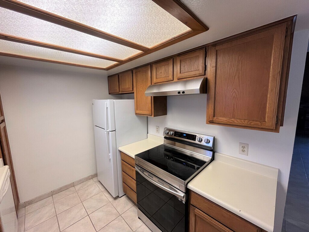 CUTE & UPDATED GROUND LEVEL CONDO. BRAND NEW WOOD INSPIRED VINYL FLOORING THROUGHOUT. NEW PAINT, AND REFINISHED COUNTERTOPS AND CABINETS. BRAND NEW FRIDGE AND WASHER DRYER. LIVING ROOM HAS WOOD BURNING FIREPLACE WITH SLIDING GLASS DOOR TO GIVE YOU ACCESS TO A SMALL PATIO WITH ADDITIONAL STORAGE. BEDROOM HAS PLENTY OF CLOSET SPACE WITH ANOTHER SLIDER LEADING TO THE PATIO. BATHROOM HAS A SINGLE SINK VANITY AND AN ADDITIONAL MAKEUP VANITY. FULL TUB AND SHOWER. ONE COVERED PARKING SPACE WITH ADDITIONAL EXTERIOR STORAGE WITH AMPLE, OPEN PARKING NEARBY. COMPLEX HAS POOL AND TENNIS COURTS, SORRY, NO PETS. EVAPORATIVE COOLING IN SUMMER. WATER & TRASH INCLUDED IN RENT.