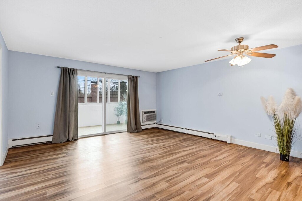 Property Id: 2339788 Beautifully updated ground-floor unit in the desirable 55+ Windsor Gardens community. This bright home features an open-concept kitchen with stainless steel appliances, granite countertops, a built-in microwave, and a large pantry. The spacious living room is filled with natural light and opens to a covered sunroom with a private entrance and access to open space. Two generous bedrooms include a primary suite with a walk-in closet and walk-in shower. The laundry for this unit is found on the 2nd floor, accessible by elevator. Additional highlights include a detached garage, one off-street parking space, and a storage unit. Enjoy resort-style amenities including a pool, fitness center, clubhouse, spa, and walking trails.