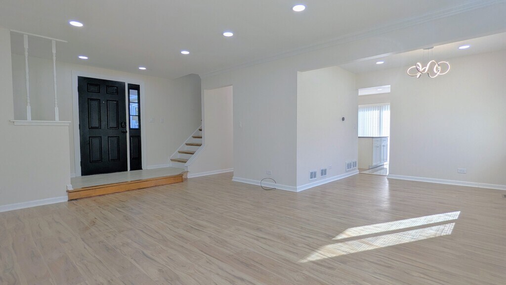 Feel right at home in this stunning, newly renovated 4-bedroom, 2.5-bath gem in the heart of Carol Stream's sought-after South area! Perched proudly on an elevated lot with beautiful curb appeal, this home blends modern comfort with everyday livability. Step inside to find a bright, open-concept layout where Western exposure pours through large windows and gleams across brand-new luxury vinyl plank flooring. The living and dining spaces flow seamlessly, accented by a modern and elegant light fixture. The spacious kitchen is a showstopper—complete with sleek granite countertops, stainless steel appliances, ample cabinetry, and a sunny breakfast nook perfect for your morning coffee. Sliding doors lead to a large, fully fenced backyard, ideal for gatherings, gardening, or quiet evenings under the stars. Upstairs, discover three bedrooms and two brand new bathrooms. The primary suite feels like a retreat, featuring his/her closets and an ensuite with designer tilework and a walk-in shower. The finished basement expands your options—set it up as a cozy family room, home office, guest suite, or fitness space. A dedicated laundry area and extra storage make day-to-day living easy. Grow roots in Carol Stream in this unbeatable location near Evergreen Elementary School, parks, golf courses, shopping, and recreation centers. This home is a must-see! Tenant is responsible for all utilities, landscaping and snow removal. Available immediately. Tenant Requirements: 680+ Credit Score Employment, background and rental verification Household income should be 3x rent 1 Month security deposit $50 Non refundable application fee Small pets on approval with extra fees Please message us for a link of the video tour or to schedule an in-person appointment. L6 Realty LLC