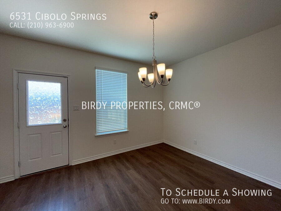 Price Availability Date Unit Sq Ft Deposit $1,850 March 6, 2026 6531 Cibolo Springs 2095 sq ft $1,450 Model Rent and Fees