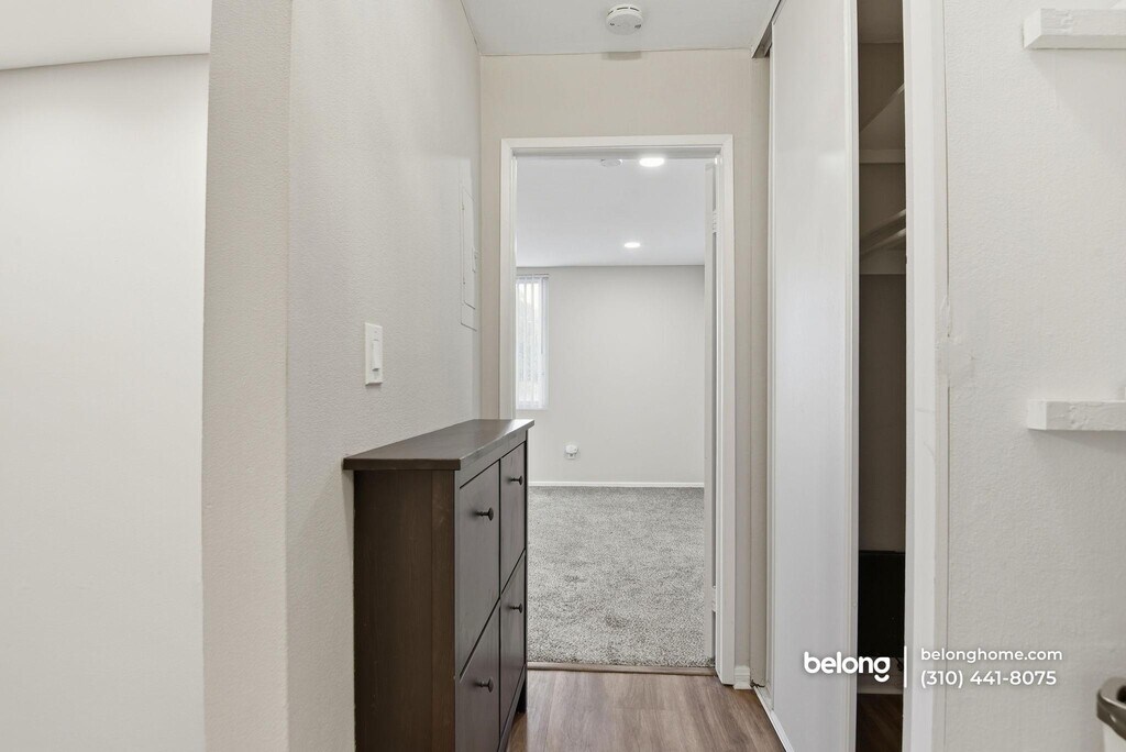 Refreshed touches and clean, modern lines give this 1-bedroom, 1-bath condo a polished backdrop for everyday living. Thoughtful details like the mixed-tone backsplash, stainless steel appliances, and generous storage define the kitchen, creating a functional space that keeps daily routines easy to manage. Your living area extends naturally onto a private balcony, offering room for a quiet morning coffee and leafy views that bring a bit of calm to the day. Throughout the home, the combination of warm flooring, neutral walls, and thoughtful lighting helps each space feel cohesive and adaptable. Your bedroom feels grounded with soft carpeting and mirrored closet doors. In the bathroom, a wide vanity with dual sinks, ample cabinetry, and a tiled shower keeps your essentials organized and within reach. As part of a well-equipped community, you’ll enjoy a gym, grilling stations, laundry facilities, and inviting spots to unwind, including a pool, hot tub, and steam room. There is also a dedicated mailroom and package area for convenient deliveries. The location places you close to everyday essentials, with Peninsula Shopping Center, Trader Joe’s, Ralphs, and local cafes just minutes away. Nearby parks like Los Verdes Park and Del Cerro Park offer open green space, while coastal trails and bluff-top viewpoints across Rancho Palos Verdes add even more options for enjoying the outdoors. *Our homes come as-is with all essentials in working order. Want upgrades? Request it through the Belong app, and our trusted pros will take care of the rest!