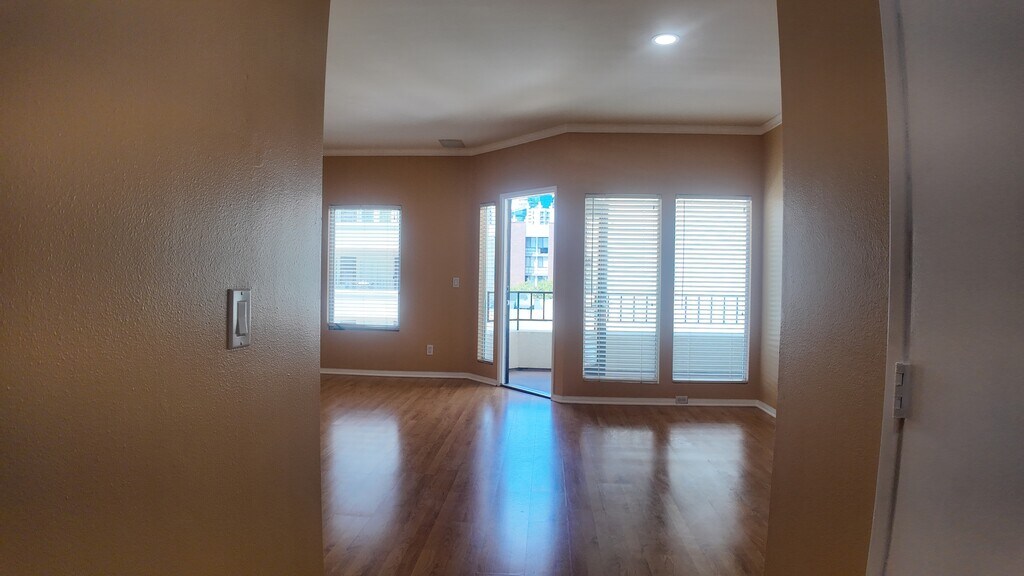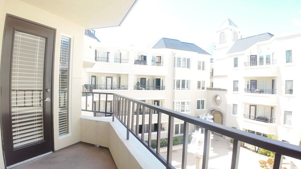 This beautiful, bright, second floor condo is available for a minimum of a one month stay. Longer stays are welcome. This is a spacious 1-bedroom, 1-bathroom condo, located in the highly sought-after Marina District, walkable to the Gaslamp, the Convention Center, Horton Plaza, just one block from the trolley station, and right across the road from the entrance to Seaport Village, and the famous Kansas City BBQ restaurant (from the movie "Top Gun"). The condo balcony looks out onto a courtyard where the soothing sound of the fountain and blowing palm trees remind you of the paradise in which you live! Entrance to the balcony is available through the living room or from the bedroom. Washer/Dryer located in the unit. New windows, HVAC system, and flooring all installed in the last 24 months. Make this your new home for as long as you would like!