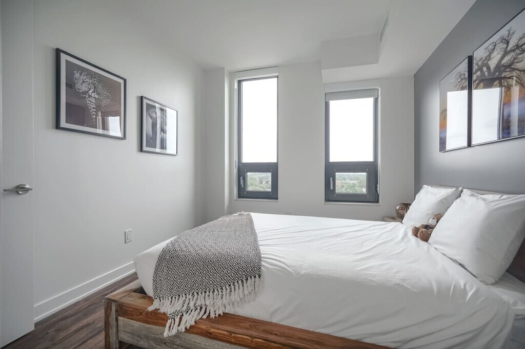 Experience the pinnacle of luxury living in the dynamic heart of Mississauga with this stunning, contemporary apartment. Designed to seamlessly combine sophistication and comfort, it creates the ideal retreat for business professionals, families, or couples seeking a memorable getaway. This spacious 2-bedroom apartment offers scenic views, a fully equipped sleek kitchen, and in-suite laundry for added convenience. Pet-friendly amenities are also available, and the location is close to Meadowvale Conservation Area and Square One Mall. Step into a welcoming and luxurious space in Mississauga’s serene Meadowvale area. The elegantly designed living room invites you to unwind with its plush seating and modern decor. Relax on the comfortable couch, watch your favorite shows on the Smart TV, or enjoy the peaceful views of the lush surroundings. The open-concept design seamlessly integrates the living, dining, and kitchen areas, creating a harmonious flow perfect for leisure or entertaining. Prepare meals in the fully equipped, modern kitchen boasting sleek countertops, premium appliances, and ample storage. Whether you’re cooking a quick breakfast or a gourmet dinner, this kitchen ensures an enjoyable culinary experience with everything you need at your fingertips. The apartment is thoughtfully designed for families, offering a safe and welcoming environment. A pack 'n play is available upon request. Cribs and high chairs are available on demand, and every little guest receives an adorable teddy bear for a special touch. Complimentary pet bowls are provided to make your furry friend feel welcome, and some buildings feature dedicated pet spaces for play and relaxation. One pet per apartment is allowed. Nestled in the Meadowvale neighborhood of Mississauga, this location offers a perfect balance of suburban tranquility and urban convenience. Surrounded by lush greenery, residents enjoy access to the beautiful Lake Aquitaine Park, with its scenic trails, picnic spots, and opportunities for outdoor recreation. The area is well-served by amenities, including grocery stores, restaurants, and shopping centers like Meadowvale Town Centre, just minutes away. Families will appreciate the proximity to highly-rated schools, while professionals benefit from convenient access to major highways like the 401 and 407, making commuting to downtown Mississauga or Toronto seamless. With a friendly community atmosphere and a wealth of recreational and practical amenities, this neighborhood is ideal for those seeking comfort, convenience, and a connection to nature. Smoking is prohibited, ensuring a clean and healthy space for all. Guests will have full access to the entire apartment with complete privacy. A Notice to Vacate must be sent in writing 30 nights before the departure date. Failure to do so will result in a charge of 30 nights (only valid for stays over 30 nights). Reservations can be extended with 30 nights notice and are always subject to availability and rate variances. This property is ideal for business travelers, with high-speed Wi-Fi and a dedicated workspace to ensure productivity in a peaceful setting. [SI]