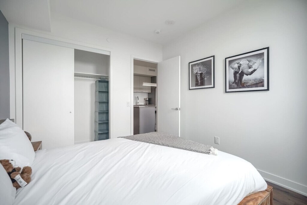 Experience refined living in the vibrant heart of Mississauga with this stunning 1-bedroom apartment. Seamlessly blending elegance and comfort, it offers the perfect retreat for business travelers, families, or couples. Enjoy spacious interiors and breathtaking views, along with convenient in-suite laundry and a pet-friendly environment. Located close to Meadowvale Conservation Area and Square One Mall, this apartment provides both tranquility and urban convenience. Enter into a luxurious, welcoming space in the tranquil Meadowvale area of Mississauga. The living room, with its plush seating and contemporary décor, invites you to relax. Unwind on the comfortable couch, enjoy your favorite shows on the Smart TV, or simply gaze out at the lush surroundings. The open-concept design blends the living, dining, and kitchen areas seamlessly, making it perfect for both relaxing and entertaining. Cook to your heart’s content in the fully equipped, modern kitchen, featuring sleek countertops, premium appliances, and ample storage space. Whether whipping up a quick breakfast or preparing a gourmet dinner, you’ll have everything you need to create a delicious meal in style. Relax in the peaceful ambiance of the spacious bedroom, designed for ultimate comfort. The queen-size bed offers a restful night’s sleep, while the large closet ensures ample storage. The modern, spa-like bathroom features sleek fixtures, offering a rejuvenating experience for the perfect start or end to your day. We welcome your furry companions with our pet-friendly policy, allowing one pet per apartment. Complimentary pet bowls are provided to make your furry friend feel welcome, and some buildings feature dedicated pet spaces for play and relaxation. Families will appreciate the safe, welcoming atmosphere, with a pack ‘n play available upon request. Cribs and high chairs are available on demand, and every little guest receives an adorable teddy bear for a special touch. Nestled in the Meadowvale neighborhood of Mississauga, this location offers a perfect balance of suburban tranquility and urban convenience. Surrounded by lush greenery, residents enjoy access to the beautiful Lake Aquitaine Park, with its scenic trails, picnic spots, and opportunities for outdoor recreation. The area is well-served by amenities, including grocery stores, restaurants, and shopping centers like Meadowvale Town Centre, just minutes away. Families will appreciate the proximity to highly-rated schools, while professionals benefit from convenient access to major highways like the 401 and 407, making commuting to downtown Mississauga or Toronto seamless. With a friendly community atmosphere and a wealth of recreational and practical amenities, this neighborhood is ideal for those seeking comfort, convenience, and a connection to nature. Public transit is well-integrated, with MiWay buses offering frequent connections to Meadowvale GO Station, which provides train and bus services to Toronto and beyond. For drivers, proximity to major highways like the 401 and 407 ensures seamless commuting across the Greater Toronto Area. The area is also pedestrian- and bike-friendly, with scenic trails around Lake Aquitaine and local parks, encouraging outdoor exploration. Ride-sharing services like Uber and local taxis are readily available, offering additional flexibility for short trips. Guests will have full access to the entire apartment with complete privacy. The apartment is smoke-free, providing a healthy environment for guests of all ages. A 24/7 guest support team is available to assist with any needs during your stay. A laptop computer is not included. Ideal for business professionals, the apartment features high-speed Wi-Fi and a dedicated workspace, ensuring both productivity and relaxation in a peaceful environment. [SI]