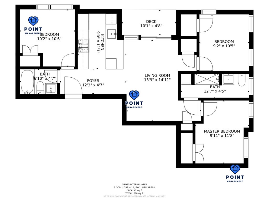 3 Beds, 2 Baths, 815 sq ftTotal Monthly PriceAvailable Now12 Month Lease TermTotal Monthly Price