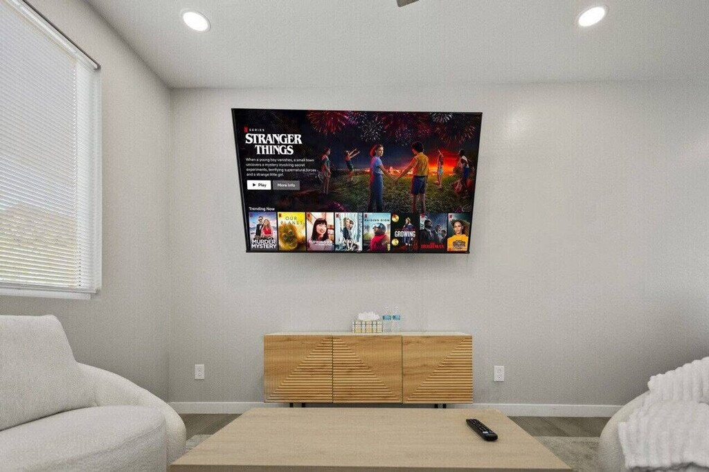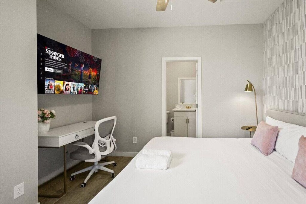 Enjoy a stylish and spacious retreat in the heart of Glendale! Feel at home in this modern 2-bedroom, 2-bathroom apartment. This beautifully curated apartment offers a dreamy king-size bed, luxury Beautyrest Hybrid mattresses, and a chic design. The open-concept living and dining area features wood accents and contemporary finishes. The fully stocked kitchen includes a stove, oven, fridge, microwave, dishwasher, coffee maker with coffee essentials, toaster, kettle, full dinnerware, cookware, and baking trays. The bathrooms are well-equipped with a shower, bathtub, toilet, sink, mirror, towels, hairdryer, and essential toiletries. Entertainment options include a 70" 4K smart TV in the living room and HDR smart TVs in both bedrooms. A foldable crib is available. Additional towels can be arranged upon request in advance. This apartment is centrally located near State Farm Stadium for NFL games, concerts, and events, and it's also minutes from Westgate, Topgolf, shopping, dining, and major roads. A Minut noise monitoring device is in the unit. Essentials, including towels, shampoo, conditioner, soap, and dishwashing essentials, are provided in a starter quantity only and are not unlimited. Toiletries and other consumable supplies are provided as a one-time set-up at check-in, with no refills or replacements offered during your stay. [SI]