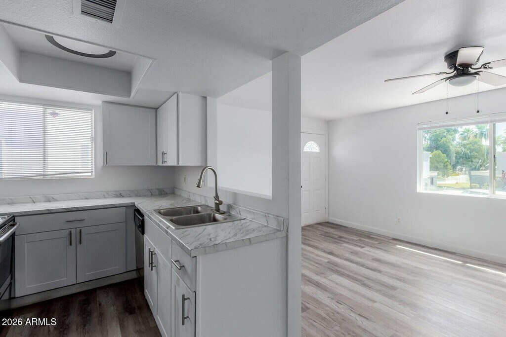 Discover this charming end-unit townhome in the sought-after Loma Linda Condominiums! Featuring a bright and inviting interior with wood-look flooring throughout,a neutral palette,and abundant natural light,this home is perfect for comfortable living. The great room offers a cozy space for relaxation or entertaining. The kitchen is equipped with white shaker cabinets,stainless steel appliances,and a convenient pass-through window. With 2 bedrooms and 1 bathroom,this low-maintenance home is ideal for a variety of lifestyles. Enjoy the added convenience of an inside laundry area,a 1-car garage,and additional open parking spaces. Residents can also take advantage of the sparkling community pool. Conveniently located near schools,shopping,dining,and with easy access to I-17. Move-i