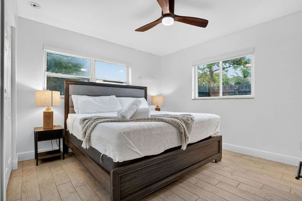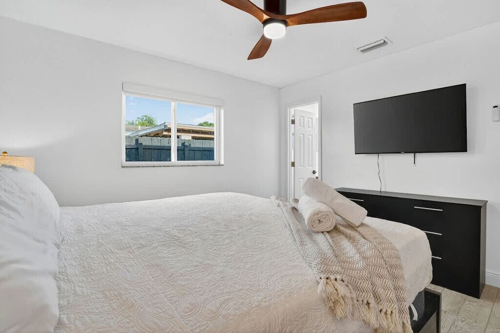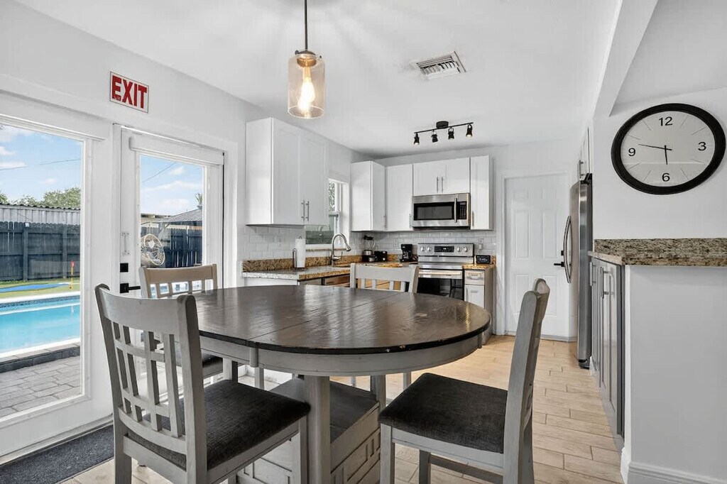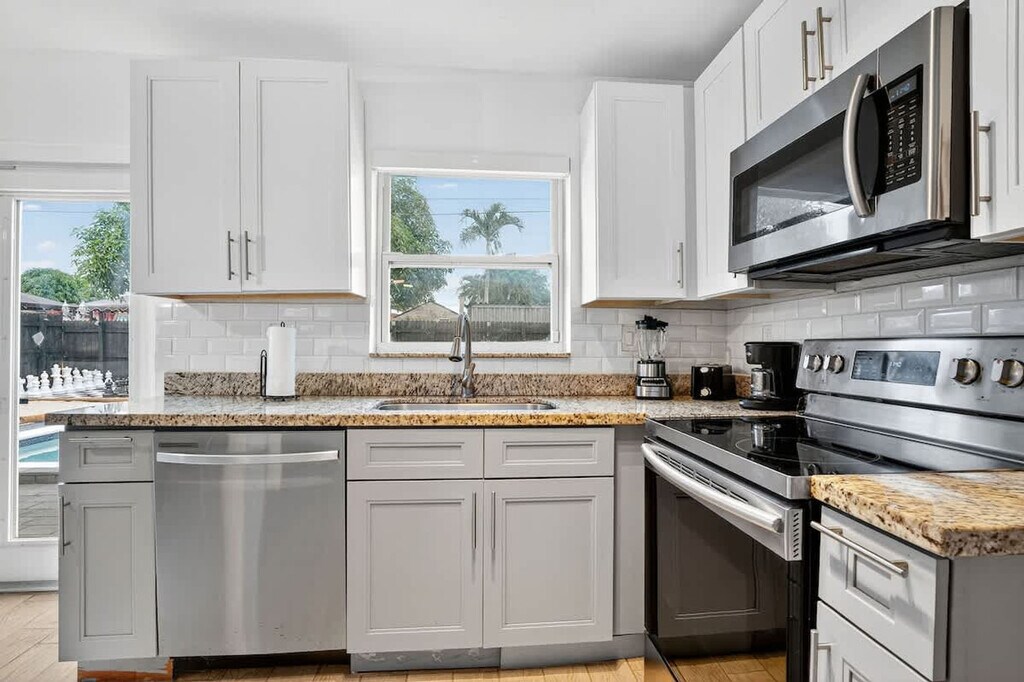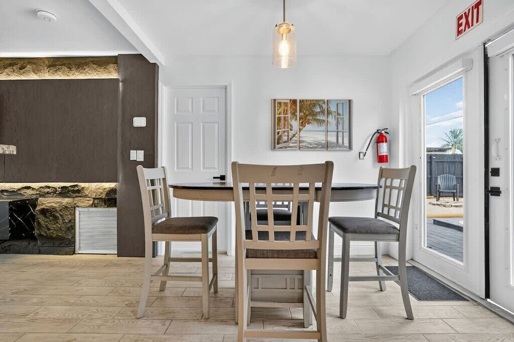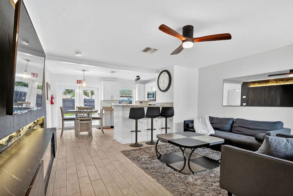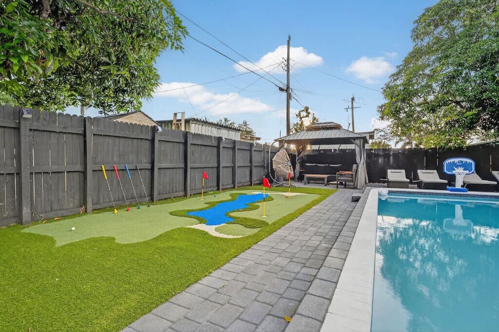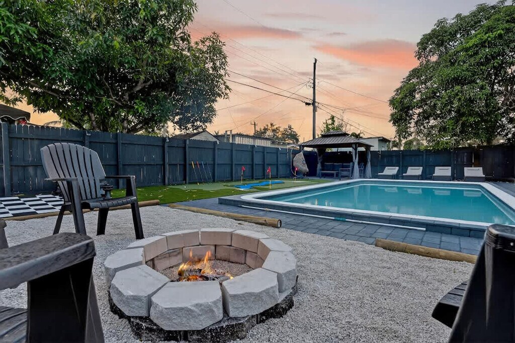 Welcome to your ultimate getaway in the heart of Hollywood. Feel at home in this thoughtfully designed 4-bedroom home, tailored for comfort, relaxation, and fun. This home features a fully equipped kitchen, a heated pool (upon request), a mini golf and soccer field, a fire pit area, and a life-size chess game. All bedrooms are equipped with Smart-TVs. Extra air mattresses can be provided upon request. Enjoy fast Wi-Fi and a unique backyard. The pool can be heated for an additional $50 per day, with a request at least 48 hours before check-in. Centrally located, this home is just 1 mile from the Hard Rock Casino, supermarket, and restaurants, 7 miles from Fort Lauderdale Airport (FLL), and 9 miles from the beach. Ride-sharing services like Uber or taxis are highly recommended for getting around. Driveway parking is available for up to 4 vehicles; parking on the street or grass is prohibited and may result in a city fine. This is a pet-friendly property; please indicate the number of pets you are bringing before booking. Guests are asked to clean up after using the BBQ, or an extra $50 cleaning fee may apply. Smoking is not allowed inside the house. The landscaper will enter the property for scheduled lawn maintenance every 15 days, and the pool technician will conduct pool maintenance twice a week. These services are automatic, quick, and non-intrusive. [SI]