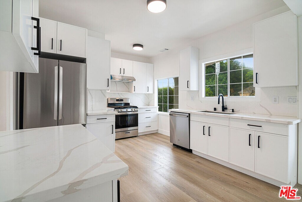 - Brand new fully remodeled townhome-style duplex unit w/ all new appliances, in-unit laundry, new bathrooms and kitchen, lighting, floors, in one of the most desirable locations in town. 9.8/10 Walk Score, 9.2/10 Restaurant Score, and an unmatched 10/10 Shopping Score! Open concept living room w/ gas fireplace, dining room, and kitchen all drenched in natural sunlight. Separate laundry room w/ tons of storage + a walk-in pantry. Large downstairs bedroom with its own access outdoors makes for a perfect office or guest room, and has access to a nearby hall bathroom. 2 bedrooms upstairs are complete with walk in closets and en-suite bathrooms. The rear upstairs bedroom even has a private patio and a skylight. Be the first to live in this beautifully updated space in the heart of Beverly Grove. Ready to be rented immediately. Listing provided by: Bryan Beagles of Keller Williams Hollywood Hills LA State License 2126347 Listing posted by Gary Cole [SYNDID 4143654 11142025]