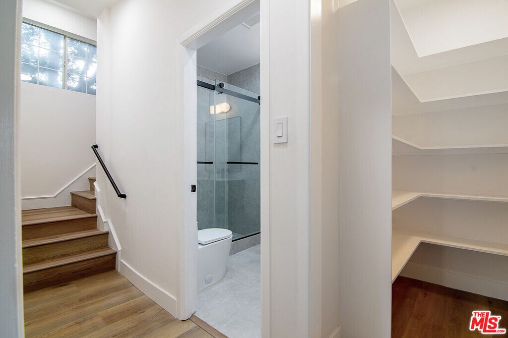 Brand new fully remodeled townhome-style duplex unit w/ all new appliances, in-unit laundry, new bathrooms and kitchen, lighting, floors, in one of the most desirable locations in town. 9.8/10 Walk Score, 9.2/10 Restaurant Score, and an unmatched 10/10 Shopping Score! Open concept living room w/ gas fireplace, dining room, and kitchen all drenched in natural sunlight. Separate laundry room w/ tons of storage + a walk-in pantry. Large downstairs bedroom with its own access outdoors makes for a perfect office or guest room, and has access to a nearby hall bathroom. 2 bedrooms upstairs are complete with walk in closets and en-suite bathrooms. The rear upstairs bedroom even has a private patio and a skylight. Be the first to live in this beautifully updated space in the heart of Beverly Grove. Ready to be rented immediately. MLS# 25615509