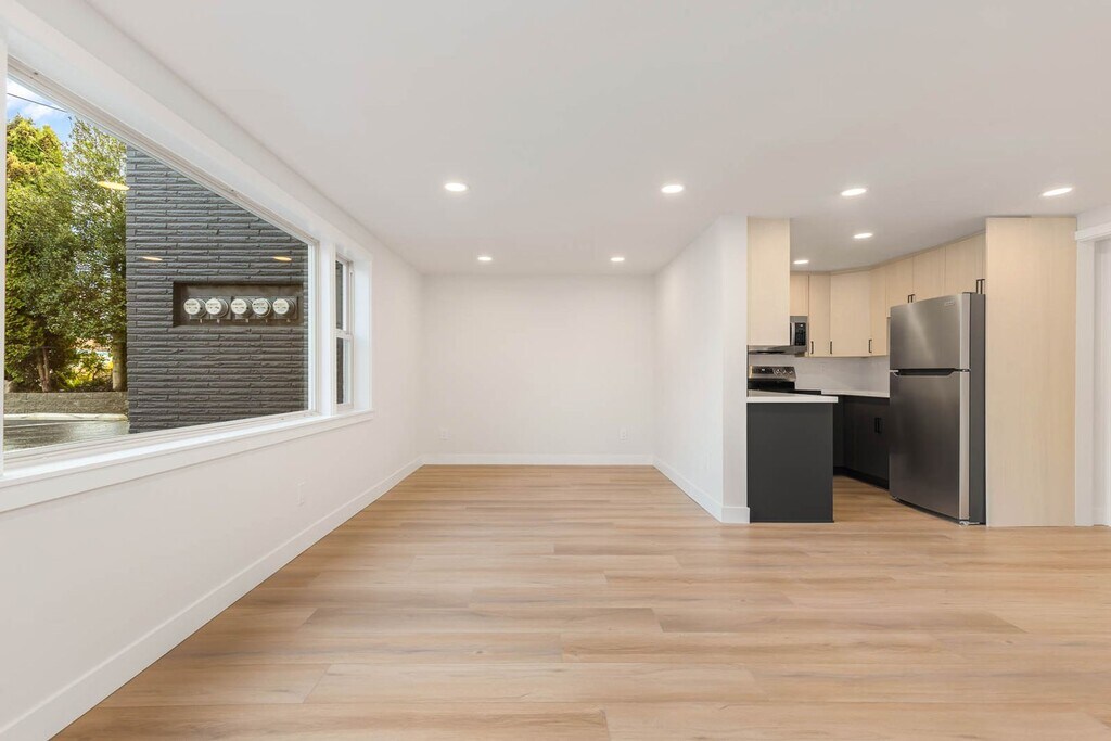 Welcome to this beautifully renovated 4-plex in the heart of Ballard! This modern 1-bedroom, 1-bath home has been thoughtfully updated throughout, offering a fresh and stylish living experience in one of Seattle’s most sought-after neighborhoods. Step inside to this top floor open, light-filled living area featuring large windows and sleek vinyl flooring that seamlessly connects the space. The brand-new kitchen boasts contemporary two-tone cabinetry, stainless steel appliances, generous storage, and elegant black hardware—perfect for both cooking and entertaining. The bedroom is spacious and inviting, while the fully remodeled bathroom showcases modern finishes and a clean, timeless design. The convenience of an in-unit washer and dryer makes everyday living effortless. Enjoy a shared outdoor area at the back of the complex—ideal for relaxing or gathering with friends. One assigned parking space is available for $75 per month, with additional off-street parking options nearby. Located in Seattle’s desirable Loyal Heights neighborhood, you’ll be minutes from Golden Gardens Park, local cafes, shops, and easy transit access. Experience modern comfort and vibrant city living in this charming Ballard gem. Required Resident Benefit Program for an additional $36.50 per month. Program details and benefits can be found at