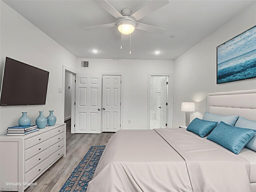 Beautifully designed duplex with one unit per floor,each featuring a private entrance,open-concept layout,and luxury vinyl plank flooring. Both units include all appliances,a master bedroom with walk-in closet,and two garage spaces (one enclosed,one exterior). The second-floor unit offers a private balcony,and the fully fenced lot provides added privacy. Built with safety and comfort in mind,the home includes fire-resistant construction and sound-reducing insulation between floors. No HOA. Airbnb welcome. Pets considered case by case. MLS# 21455428