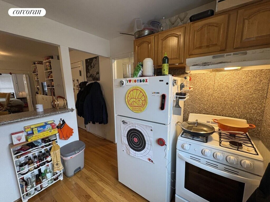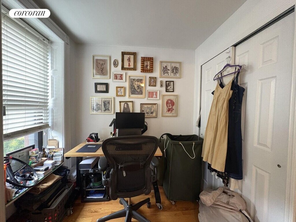 Prime Park Slope LocationThe bedroom is oversized with the added bedroom/office adjacent to it. (see photo).Top floor of a 4-unit brownstone. Lots of light. Very bright. Full sized eat in kitchen with stylish cabinets and a full-sized dishwasher. Updated renovation. Wood floors. Convenient location to all subway lines (at Barclay Center hub) on a lovely tree lined street. 20 minutes to Manhattan. Nestled between trendy 5th Avenue shops cafes galleries banks laundry book shops/5 blocks to Prospect Park.Pet considered. NO laundry. NOVEMBER 1 OCCUPANCY. Heat and hot water included in the rent. Tenant pays utilities. $20 application/credit check fee per applicant.