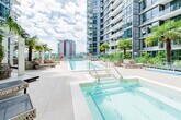 The building has a grand lobby with concierge services. This elegance extends into every home with wood veneer, integrated Blomberg appliances, marble and air conditioning. For amenities, One Pacific has the Riviera Deck which features a cantilevered glass swimming pool, the Sky Garden and several on-site retail services. One Pacific offers residents a 5-star living experience!