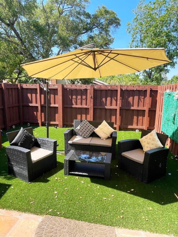Fully furnished 3BR townhome- water and high speed internet included,flexible 3+ month lease. This beautiful home is approximately 7 miles from the beach and 15 minutes from downtown,offering convenient access to dining,shopping,and entertainment while maintaining a quiet residential setting. Interior features include stainless steel appliances,washer and dryer,and smart TVs in all rooms. The private patio is finished with low-maintenance turf and provides a functional outdoor space for everyday use or entertaining. Two assigned parking spaces are located directly in front of the unit. The property includes complimentary high-speed Wi-Fi and is offered fully furnished,making it move-in ready. MLS ID F10554104