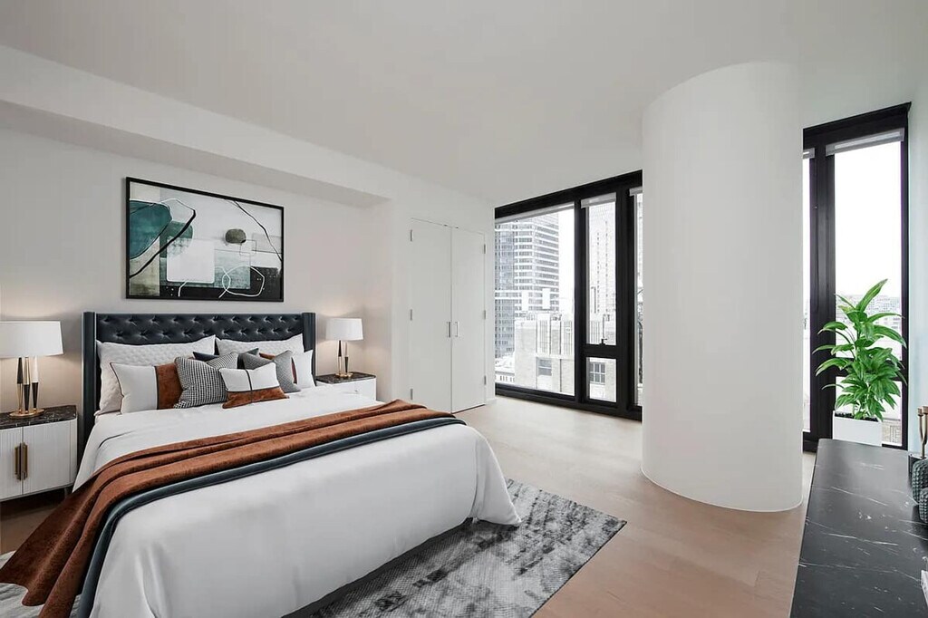 Feel at home in this sun-drenched, 2-bedroom apartment on the 24th floor of a full-service luxury building in the heart of New York City, directly across the street from the United Nations headquarters. This thoughtfully designed residence combines privacy, natural light, and modern elegance. Floor-to-ceiling windows span the apartment, bathing each room in sunlight and capturing sweeping views of the Manhattan skyline. The open-concept layout features wide-plank white oak flooring and full-height glass. The generous living area accommodates a lounge set-up, along with a separate nook. The adjacent kitchen features white Caesarstone quartz countertops, sleek Italian white lacquer cabinetry, and a full suite of high-end stainless steel appliances, including a built-in dishwasher and microwave. The space is ideal for hosting or casual everyday meals. Residents have access to a robust collection of amenities, including a 70-foot indoor pool, private fitness studio, resident lounge, children's playroom, and 24/7 concierge services. Utilities are included in the listed price (Wi-Fi, electric, heat, etc). Ideally located just moments from the East River and a short walk to Grand Central and the Empire State Building, this apartment offers a rare blend of tranquility, access, and elevated living in one of Manhattan’s most convenient neighborhoods. Excessive use of A/C (exceeding $250/month) will be billed back to guests after move-out. Smoking is not allowed on the property.