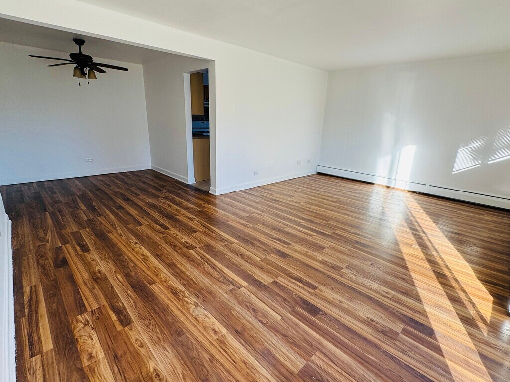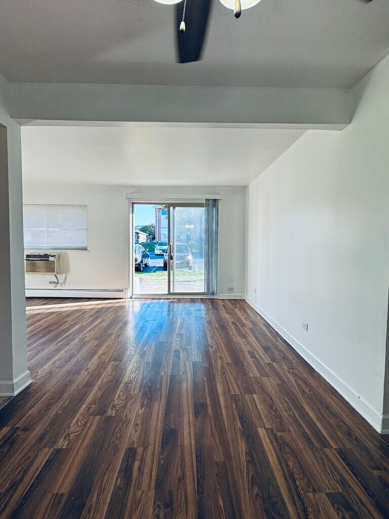 Spacious and updated 2-bedroom, 1-bath apartment featuring brand-new wooden floors and modern kitchen tiles for a fresh, clean look. The large master bedroom includes a walk-in closet offering plenty of storage space. Enjoy the convenience of water and gas included in the rent, off-street parking, and on-site laundry located just downstairs.The apartment also comes with a private storage room for additional space. Located in a well-maintained brick building on Fullerton Avenue, this unit is close to shopping, dining, and major highways, providing both comfort and accessibility. Perfect for renters looking for a move-in ready, upgraded space in Glendale Heights. Lease Duration: 12-month lease (shorter or longer leases negotiable) Rent & Utilities: Rent: $1,850/month Included: Water and gas, heat and garbage Tenant pays: Electricity (for window A/C) and any other personal utilities Security & Deposits: Security deposit: $1,850 (1 month's rent) Policies: Smoking: No smoking inside the unit Parking: 1 off-street parking spot included Move-in inspection: Apartment condition documented at move-in