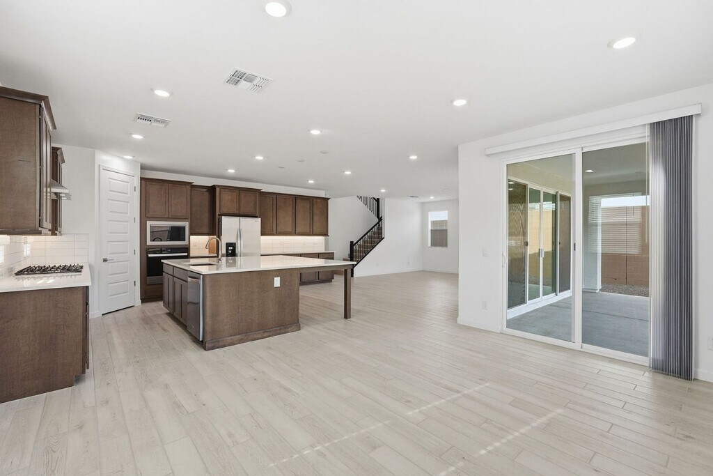 Brand New! Corner Lot! Nestled in a scenic community with playgrounds, greenbelts and direct access to hiking paths. This stunning home has it all! The grandiose Miraval II floorplan features 5 full bedrooms plus a game room and den, 4 bathrooms, 4 Car-Garage and a private yard with views! Designer selected finishes - burlap cabinetry with under cabinet lighting, quartz kitchen countertops, wood-like tile throughout and plush carpet in all the bedrooms. This beautiful home has it all including 8' doors, gourmet gas kitchen, smudge proof stainless steel appliances, blinds - everything is brand new - never lived in! Apply at Tenants will pay $24.00 per month HVAC Maintenance fee and $5.00 Admin fee plus rental tax. Total move-in cost equals 1 month's rent, 1 month's security deposit, cleaning deposit, carpet cleaning fee (non-refundable).
