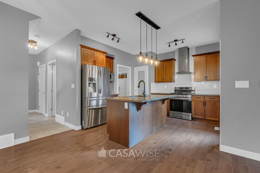 STUNNING 3-Bed/2.5-Bath Family Home With Central A/C And a DBL Garage! Step into your dream home in Southwest Edmonton, where modern comfort meets style and convenience! • Bright, open-concept main floor featuring engineered hardwood flooring and a cozy fireplace, perfect for relaxing or entertaining. • Gourmet kitchen with sleek quartz countertops and all essential appliances, including stove, fridge, dishwasher, and microwave. • Convenient main-level half bath for guests. • Spacious primary bedroom with walk-in closet and luxurious private ensuite. • Two additional generously sized bedrooms on the upper level. • Full main bathroom on the upper level for comfort. • In-suite laundry for ease and convenience. • Central A/C to keep you cool during the warmer months. • Unfinished basement providing extra storage and space. • Double front-attached garage offering additional storage and vehicle space. • Fully fenced backyard, ideal for outdoor entertaining and privacy. Nestled in Edmonton's vibrant Edgemont community, this home combines comfort with unbeatable convenience. Just minutes from the Anthony Henday, residents enjoy easy access to shopping, parks, and dining, with West Edmonton Mall less than 15 minutes away. With its prime location and welcoming atmosphere, this rental offers the perfect balance of modern living and neighborhood charm in Edmonton! Utilities, snow removal, and lawn maintenance are tenant's responsibility. One small pet is negotiable with a fee of $50/month. Pet approval is at the time of the application and not guaranteed thereafter. No Smoking. Professionally managed by Casawise Property Management Only applications received through our site will be processed: If interested, please provide us with your name, phone number, available times for viewings and a little background about you (when do you need the unit for, how many people would be living in the unit, etc.). Thank you!