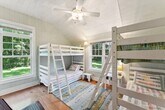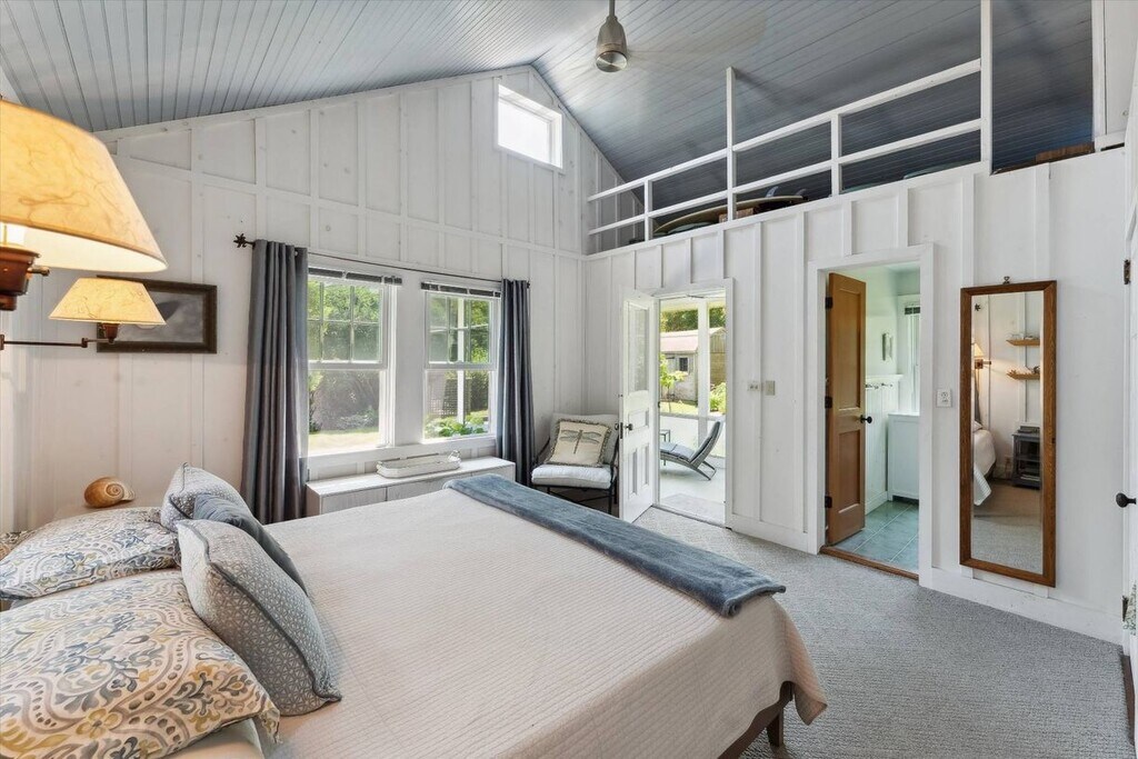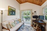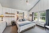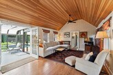 On a quiet lane in Quiogue, this 5 BR / 4 BR is the ideal summer retreat. Inside is an open kitchen, living room with fireplace, glassed-in sunroom, office with daybed, generous dining room, and four bedrooms including a master suite with a private screened-in porch. Outside there are beautiful gardens, wide lawns, a heated gunite pool, large screened in porch, and a pool/guest cottage with queen bed and bath. Basement level has ping-pong and kayaks ready for use at the nearby bay access point. Very close to the newly rebuilt Westhampton Beach Main Street and everything the village has to offer. [[Rental Registration # RP241549]]