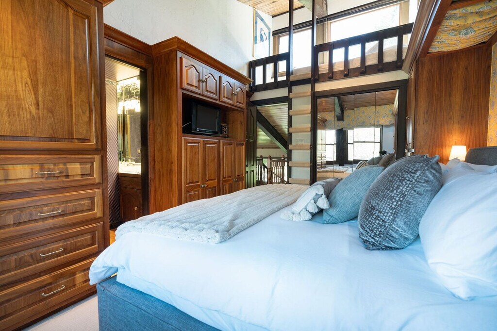 Renovated slopeside 2-bed/2-bath Interlude condo with boasting views of Snowmass Mountain. Nestled against the ski-hill,this unit delivers both privacy and great ski-in/ski-out access. Fully remodeled in 2022 with high-end finishes,new appliances and furnishings throughout. Includes 1 assigned covered parking spot,elevator access,locked rental storage,wood burning fireplace and outdoor hot tub. King primary bedroom,guest bedroom with split king + a twin bed. Can be booked with 109 for more bedrooms and extended family. MLS ID 185458