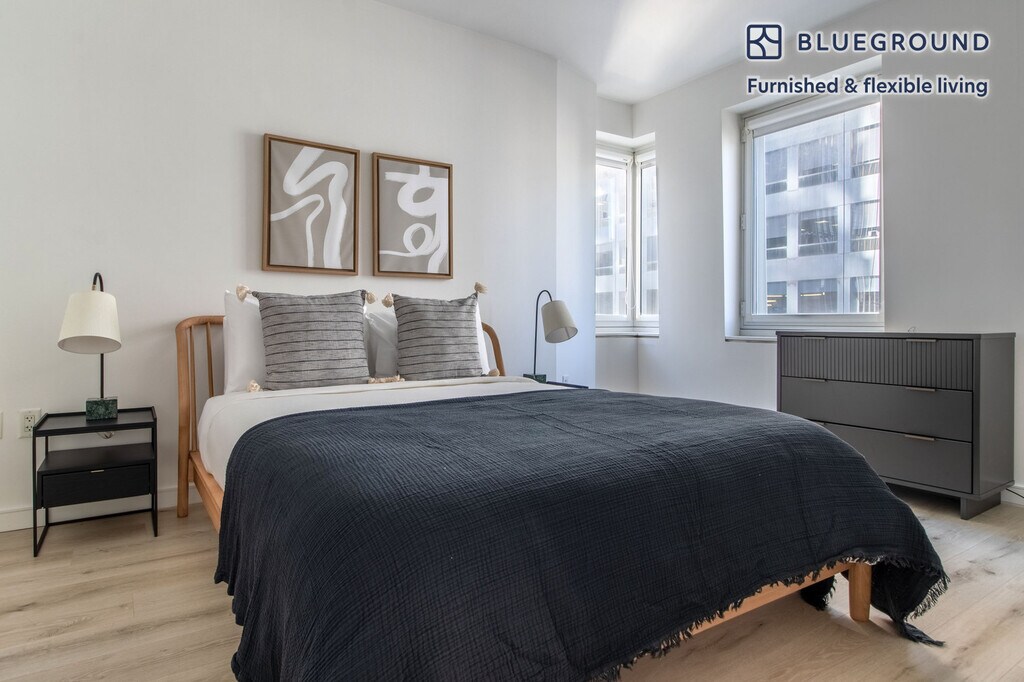 Discover the best of New York, with this one bedroom apartment in Midtown South with high floor views over the city. It’ll be easy to simply show up and start living in this furnished apartment with its fully equipped kitchen, living room, and our dedicated, on-the-ground support. (ID #NYC1380) The advertised rate of $6,525/month is the lowest available price, based on a 12 month(s) stay with a move-in date of March 2, 2026. Rates vary depending on the duration of stay, season, and other parameters. For exact pricing and additional pricing components, please visit our website and enter your desired move-in and move-out dates. The rate is applicable when billed upfront; it can be higher if billed in multiple payments. Brokers are welcome to reach out. Were you looking for an unfurnished lease? Try Blueground instead and upgrade from unfurnished to furnished living: - Furnished at rates comparable to unfurnished - No setup or furniture costs - save thousands - Move-in ready - save time, just bring your suitcase Designed with you in mind Thoughtfully designed with bespoke finishes, modern furnishings, and a fully equipped kitchen, you’ll enjoy that “I’m home” feeling with this Blueground apartment. Whether you’re lounging in your cozy living room streaming the latest and greatest entertainment on the smart TV or premium wireless speaker, or getting some well-earned rest on the superior quality mattress with fully stocked linens, you’ll fall in love with everything this Midtown South apartment has to offer. This apartment also offers in-apartment laundry. Sleeping arrangements Queen Bed, 63in/160cm Amenities Building amenities unique to this one bedroom apartment include an on-site: - Doorman - Dryer - Elevator - Washing machine - Pets allowed Arrival and ongoing support The entire apartment is yours to enjoy! Throughout your stay, you’ll have access to our Client Experience team through the Blueground App. You can schedule additional cleanings, submit maintenance requests, and view our neighborhood recommendations with just a few taps. We’ll share all details upon confirmation of your stay. Ideally Located This furnished apartment is located in Midtown South, the city’s high tech sector. Midtown South is generally used to refer to the portion of Midtown that is below 42nd Street. This central location allows residents to be just a short walk or ride away from some of the city's most famous landmarks and institutions. For instance, the Main Branch of the New York Public Library and the iconic Empire State Building. For a breath of fresh air, visit Bryant Park - known as Manhattan’s Town Square. The gorgeous residential high-rises in this neighborhood offer spectacular city views. Other things to note Building amenities may have an extra cost. This Blueground apartment has flexible lease options, allowing you to book it for one month, a year, or more. Pets are welcome, though weight limits and breed restrictions apply and may incur fees. Brokes CYOF. We take great pride in ensuring every photo displayed is shot in our own units with our actual furnishings. That said, we regularly refresh our decor and furniture arrangement, which may differ from what’s pictured. [SI]