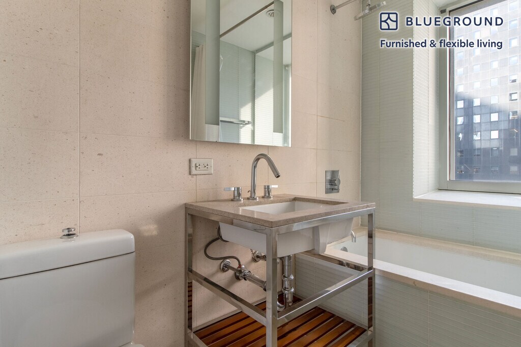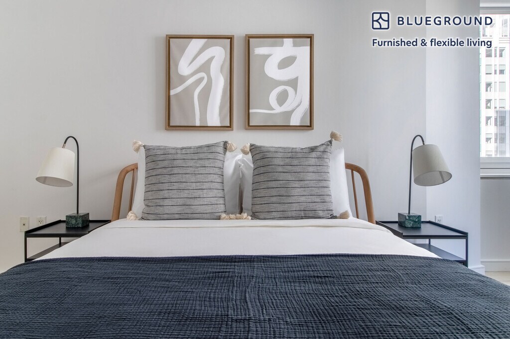 Discover the best of New York, with this one bedroom apartment in Midtown South with high floor views over the city. It’ll be easy to simply show up and start living in this furnished apartment with its fully equipped kitchen, living room, and our dedicated, on-the-ground support. (ID #NYC1425) The advertised rate of $3,438/month is the lowest available price, based on a 1 month(s) and 2 day(s) stay with a move-in date of February 19, 2026. If you’re looking for a 1-year stay, the rate is $5,842/month. Rates vary depending on the duration of stay, season, and other parameters. For exact pricing and additional pricing components, please visit our website and enter your desired move-in and move-out dates. The rate is applicable when billed upfront; it can be higher if billed in multiple payments. Brokers are welcome to reach out. Were you looking for an unfurnished lease? Try Blueground instead and upgrade from unfurnished to furnished living: - Furnished at rates comparable to unfurnished - No setup or furniture costs - save thousands - Move-in ready - save time, just bring your suitcase Designed with you in mind Gorgeous furniture, fully equipped kitchen, smart TV, and a premium wireless speaker are just a few of the amenities you’ll find inside this one bedroom apartment. Ideally located in New York, you’ll find a lot to love outside as well. When you’re ready to relax, you’ll be happy to discover every Blueground bedroom comes with superior quality mattresses, fully stocked linens, and cozy towels. We handle everything so you can simply show up and start living. This apartment also offers in-apartment laundry. Sleeping arrangements Queen Bed, 63in/160cm Amenities Building amenities unique to this one bedroom apartment include an on-site: - Doorman - Dryer - Elevator - Washing machine Arrival and ongoing support The entire apartment is yours to enjoy! Throughout your stay, you’ll have access to our Client Experience team through the Blueground App. You can schedule additional cleanings, submit maintenance requests, and view our neighborhood recommendations with just a few taps. We’ll share all details upon confirmation of your stay. Ideally Located This furnished apartment is located in Midtown South, the city’s high tech sector. Midtown South is generally used to refer to the portion of Midtown that is below 42nd Street. This central location allows residents to be just a short walk or ride away from some of the city's most famous landmarks and institutions. For instance, the Main Branch of the New York Public Library and the iconic Empire State Building. For a breath of fresh air, visit Bryant Park - known as Manhattan’s Town Square. The gorgeous residential high-rises in this neighborhood offer spectacular city views. Other things to note Building amenities may have an extra cost. This Blueground apartment has flexible lease options, allowing you to book it for one month, a year, or more. Brokes CYOF. We take great pride in ensuring every photo displayed is shot in our own units with our actual furnishings. That said, we regularly refresh our decor and furniture arrangement, which may differ from what’s pictured. [SI]