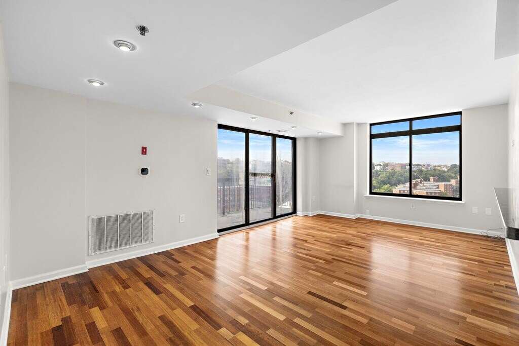 Spacious and beautifully renovated 2-bedroom, 2-bath residence in the highly sought-after Sky Club. This stunning home features brand-new hardwood floors, an open chef’s kitchen with granite countertops, stainless steel appliances, and a breakfast bar, perfect for entertaining. Enjoy a private terrace, central air, and two newly updated bathrooms. Both bedrooms offer generous space and en suite baths for added convenience. The Sky Club offers exceptional amenities, including on-site rental parking for additional fee, dry cleaning services, a health club, pool, and spa (available for an additional fee), plus 24-hour doorman service. Ideally located just one block from the Light Rail with a complimentary shuttle to the Hoboken PATH! Available 1/1/26!