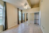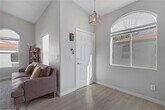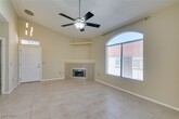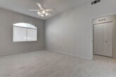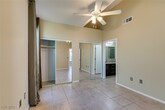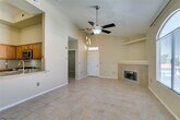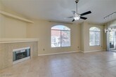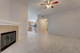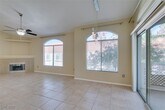 Enjoy a serene setting perfectly situated between two sparkling community pools. This home offers a private balcony off the living room, nearly direct access to the garage, and solar screens throughout for energy efficiency. The living room features a cozy gas fireplace, complemented by neutral tile flooring and ceiling fans. Residents benefit from on-site security and an impressive clubhouse with a pool table, tanning bed, fitness center with weights & cardio equipment. Truly a must-see property!