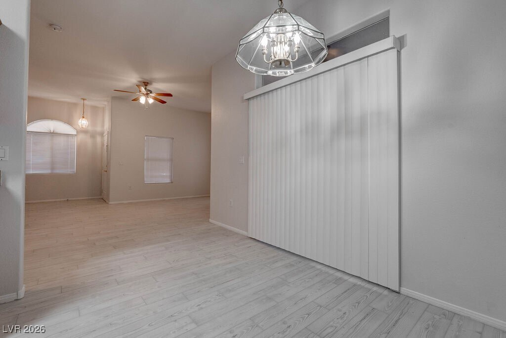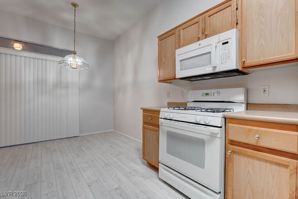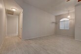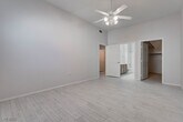 Enjoy comfortable, stylish living in this beautifully updated upstairs condo. The open floor plan is filled with natural light and enhanced by cathedral ceilings, ample storage, and luxury vinyl plank flooring throughout. The kitchen features quartz countertops, stainless steel appliances, and contemporary cabinetry with soft-close drawers, flowing seamlessly into the main living area. Both bathrooms offer upgraded finishes, and custom ceiling fans and lighting add a polished touch. Two primary bedrooms are thoughtfully placed on opposite sides of the unit for added privacy. A full-size washer and dryer are included. Located in a gated community with access to two pools and a fitness area, and just minutes from the Green Valley Ranch District’s shopping, dining, and entertainment, this condo offers convenience and comfort in a prime location.
