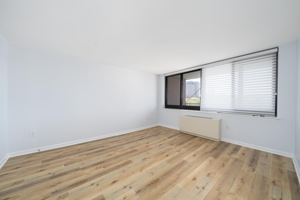 Linda TomSun drenched west facing spacious open living / dining area 2BR 2BA (1BR + den) with newly renovated flooring throughout, 1296 SqFt at highly desirable 700 Grove a steel and concrete construction. Perfect entertaining with a Gourmet open kitchen featuring granite counters, breakfast bar, slate tile flooring and stainless steel appliances. The spacious master suite offers plenty of storage and connects to an en-suite bathroom featuring large soaking tub, separate shower and marble double vanity. Den can be used as a second bedroom or office space. Modern guest bathroom. Convenience of an in home washer dryer. One indoor garage Parking space included. Rent includes heat, cold/hot water, cooking gas, cable TV and high speed internet. Building amenities include large gym, 24hr doorman residents lounge, landscaped courtyard BBQ grills and shuttle to Hoboken PATH. Available Jan 1st (Pictures from previous occupancy)